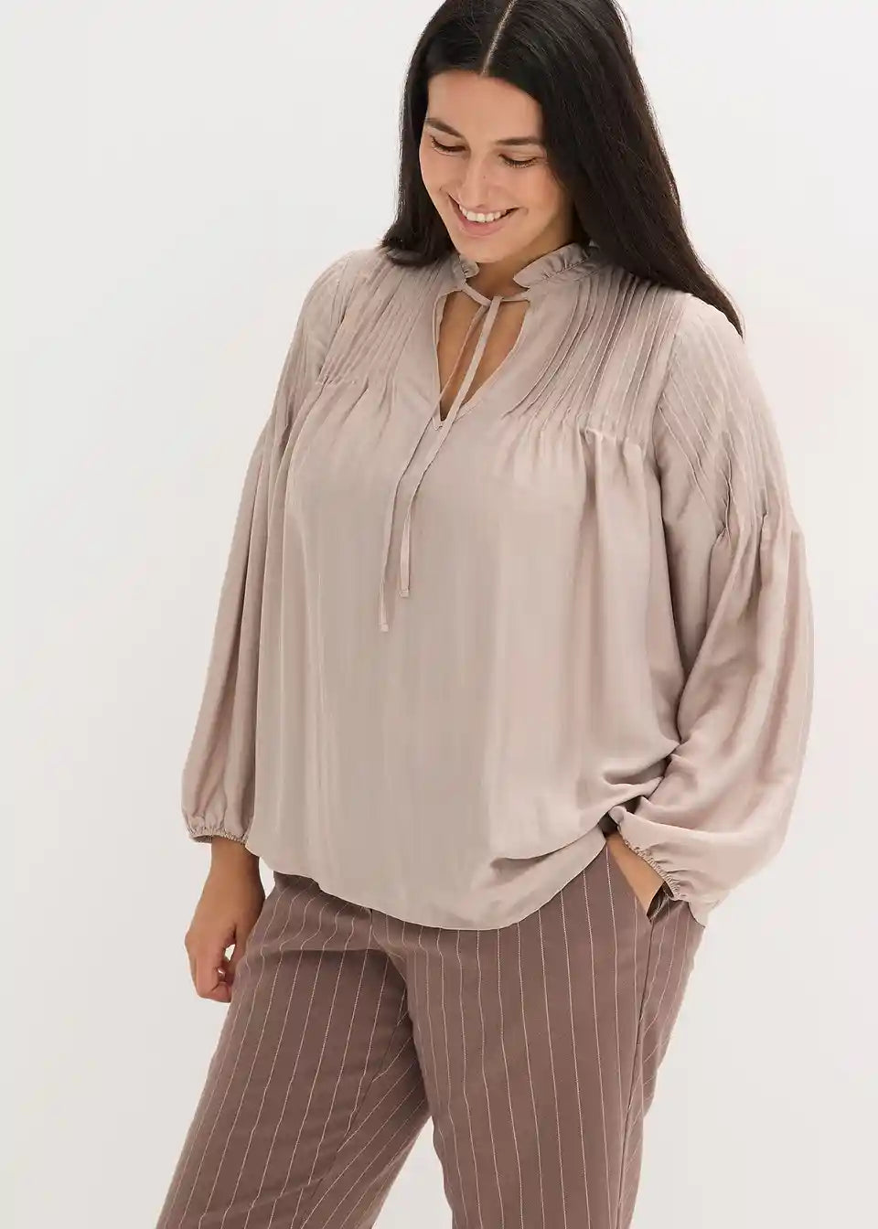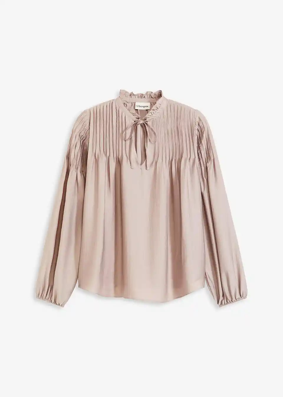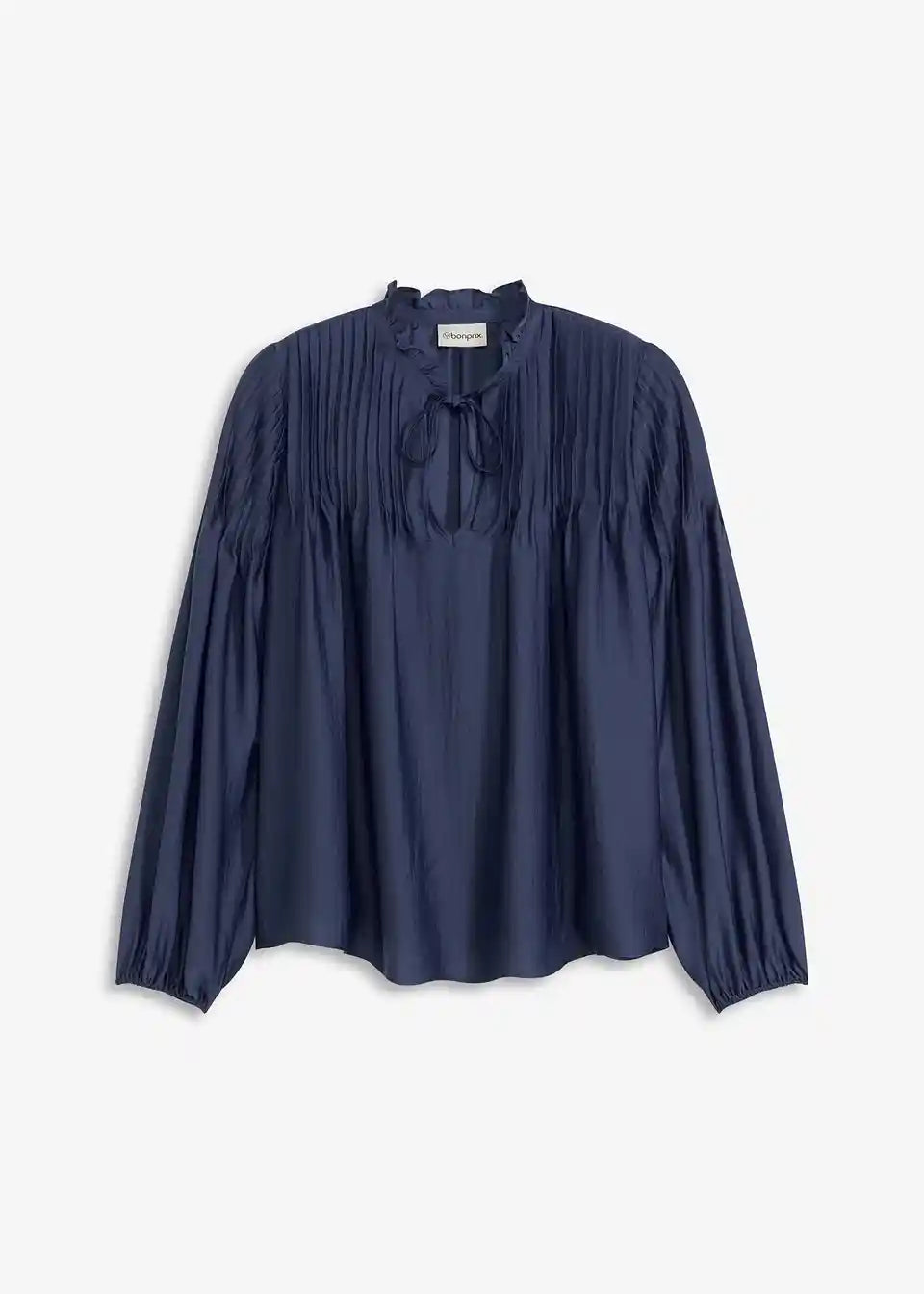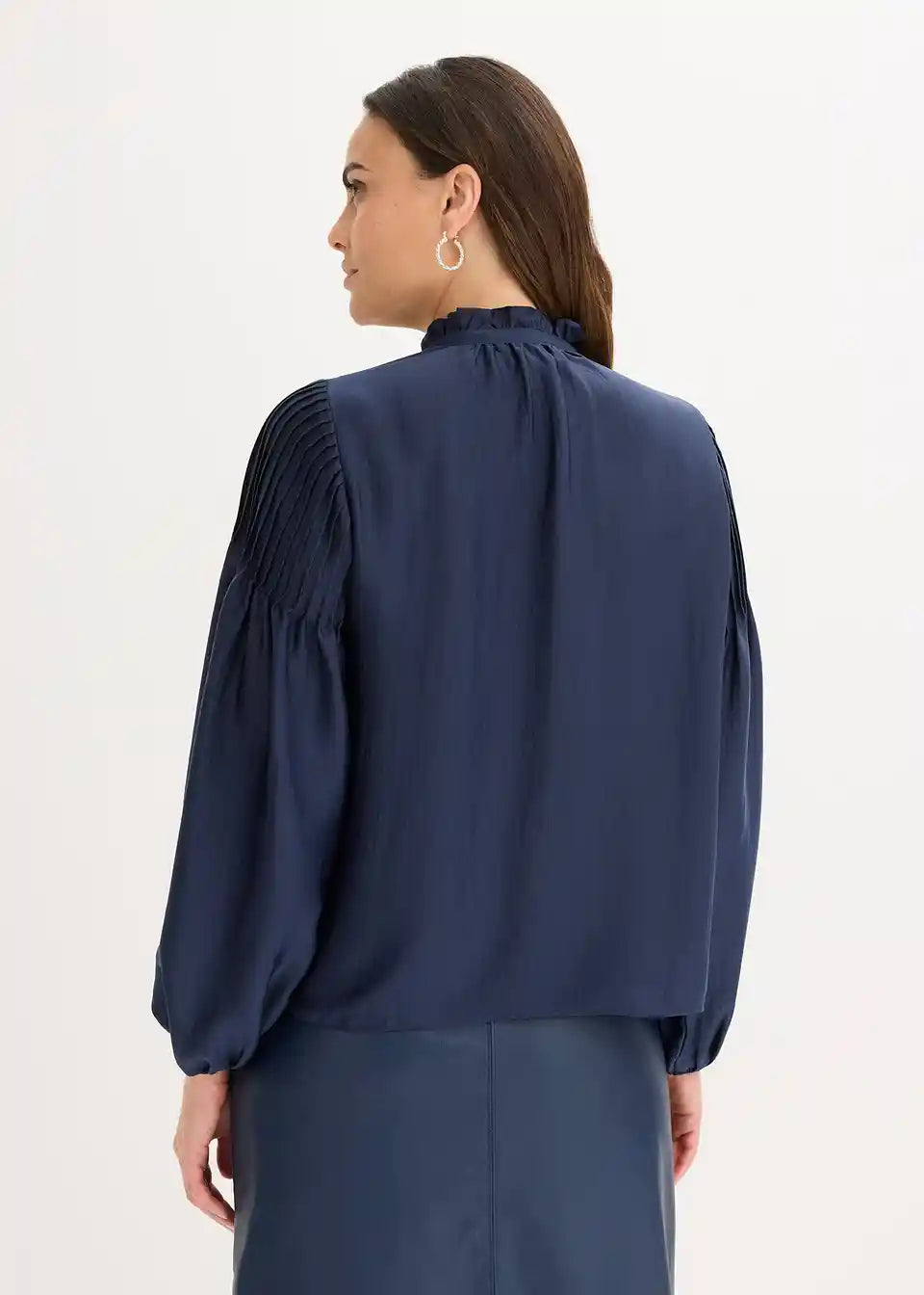 Tunika u kroju bluze od satena sa sjajem i prošivenim rubovima