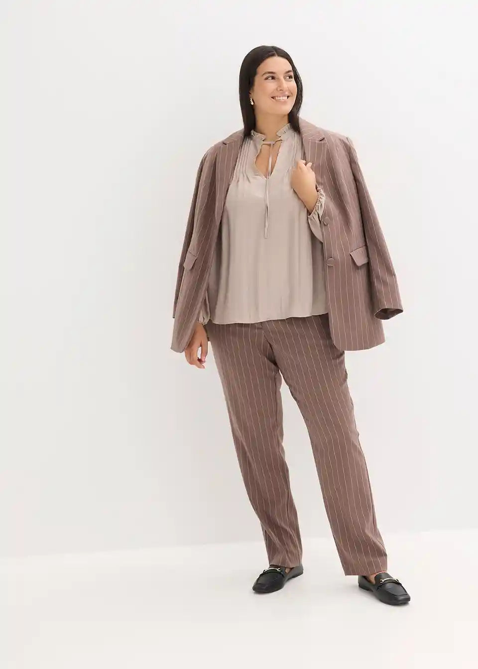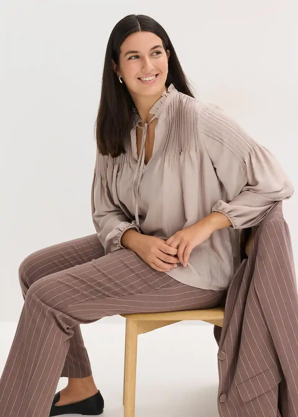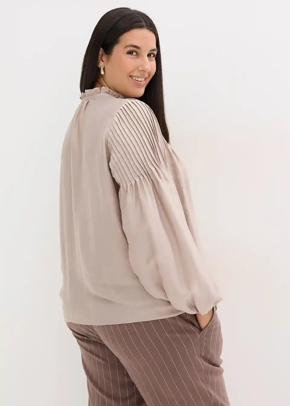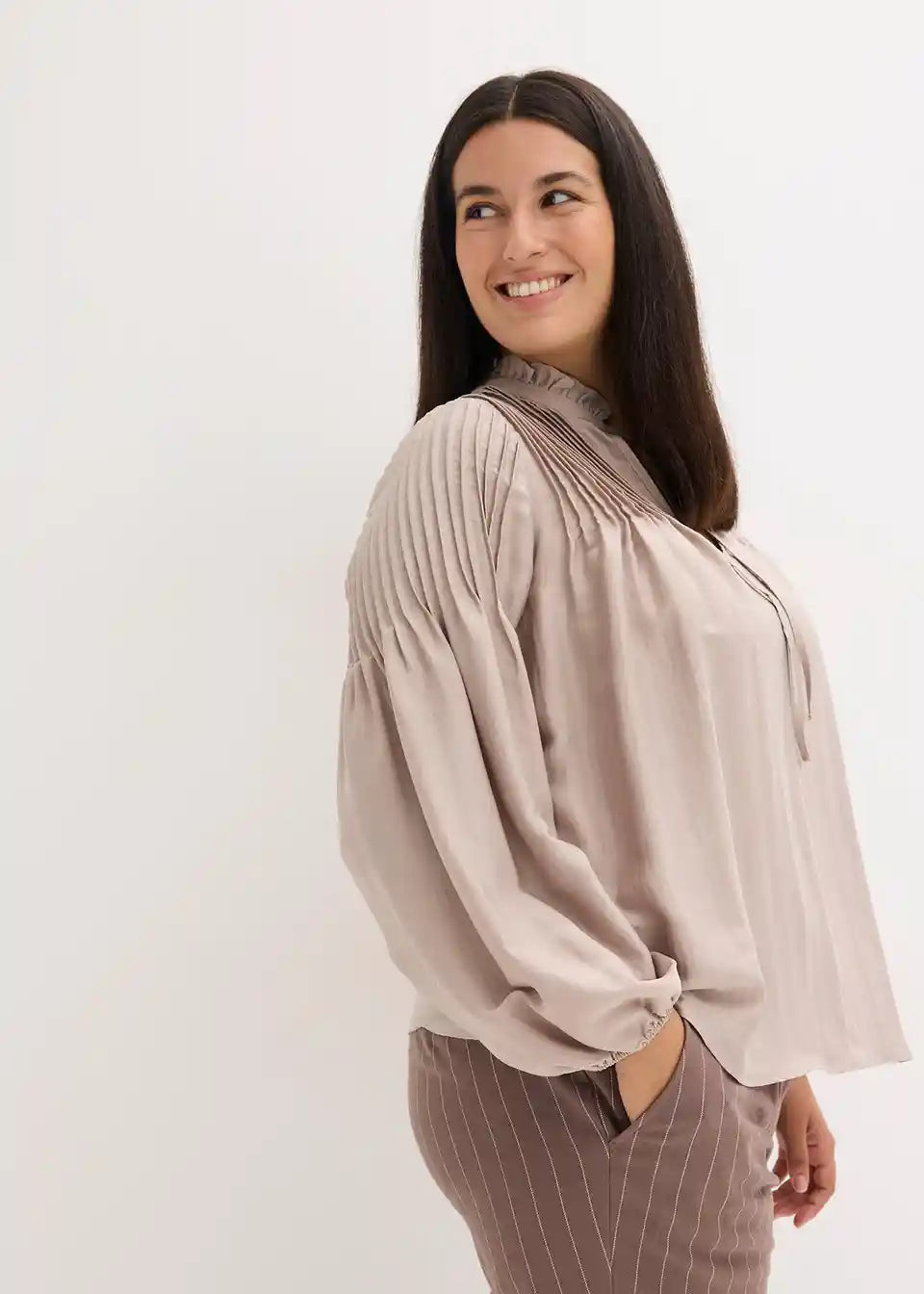 Tunika u kroju bluze od satena sa sjajem i prošivenim rubovima