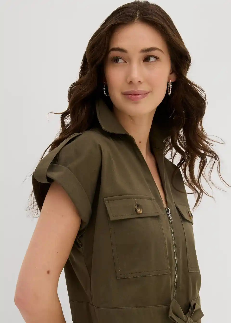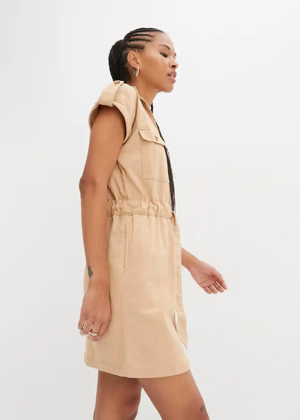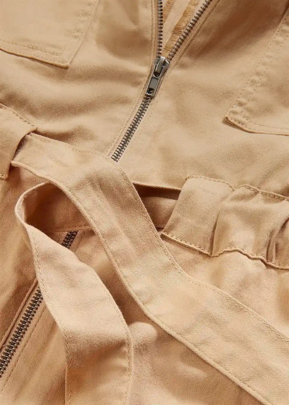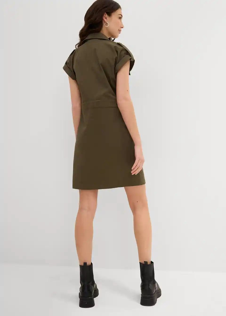 Trendovska twill haljina s cargo detaljima i podesivim pojasom na vezanje u struku, ležernog kroja.
