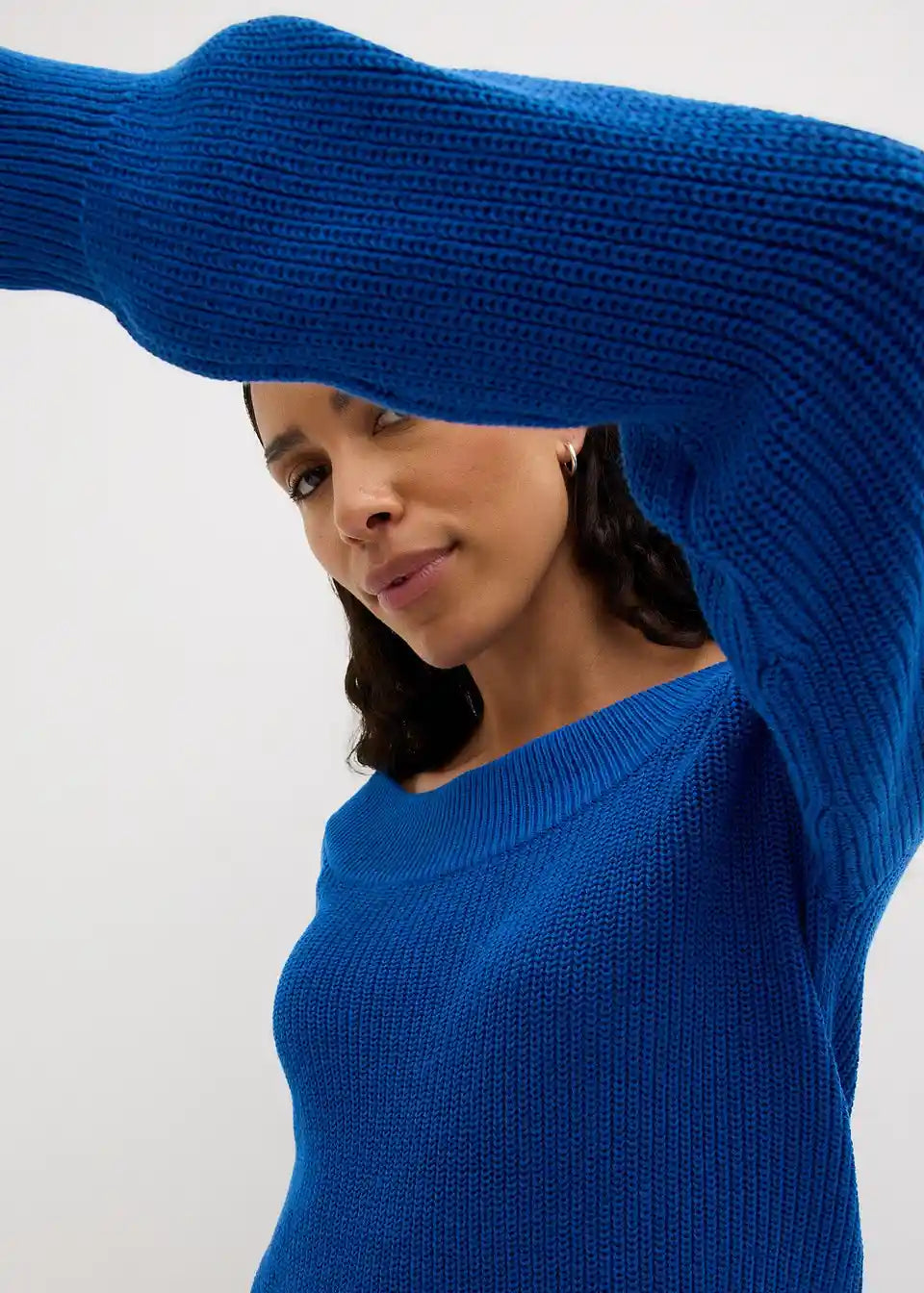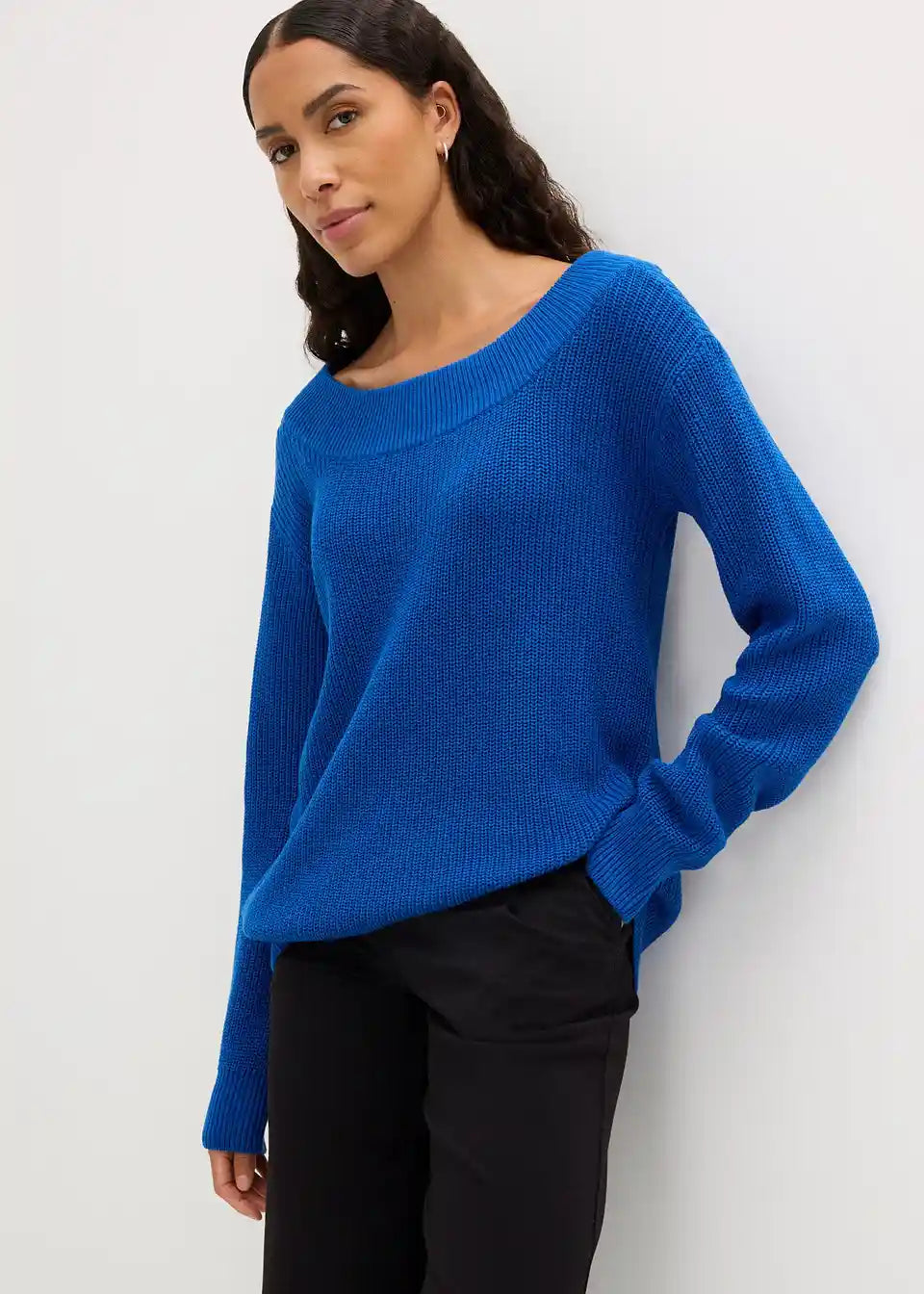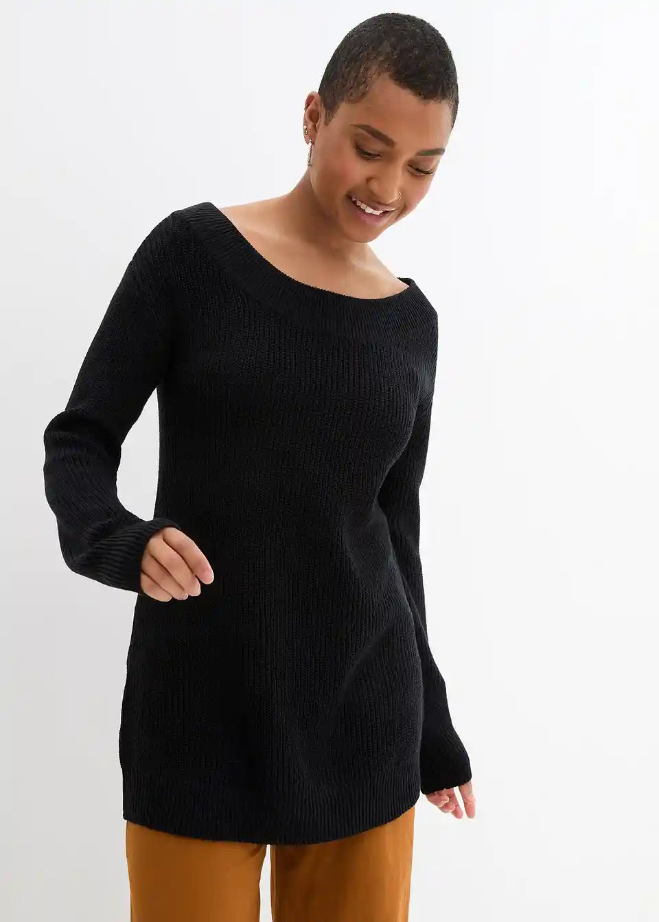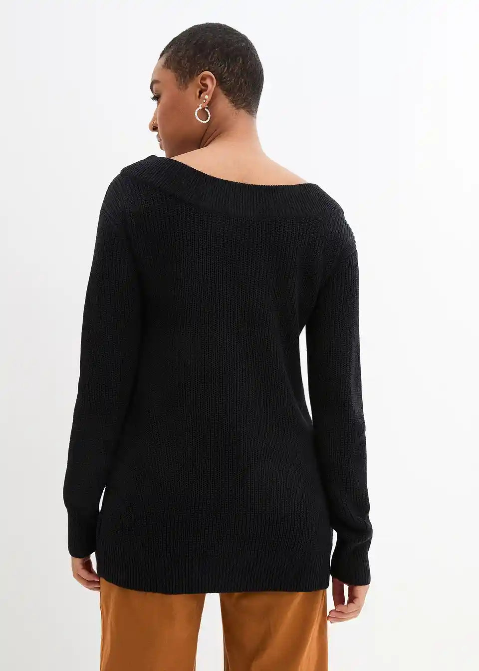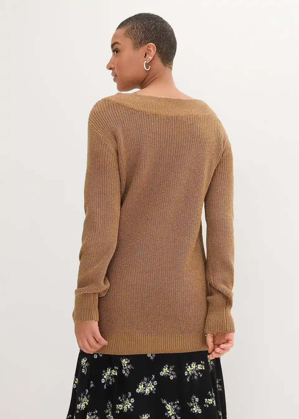 Dugi pulover u rebrastom uzorku s izrezom u obliku U-Boot-a