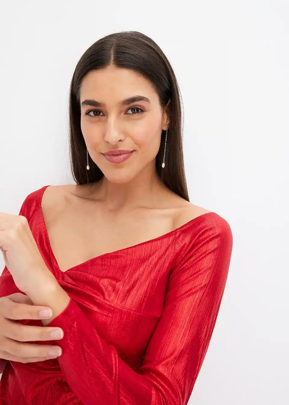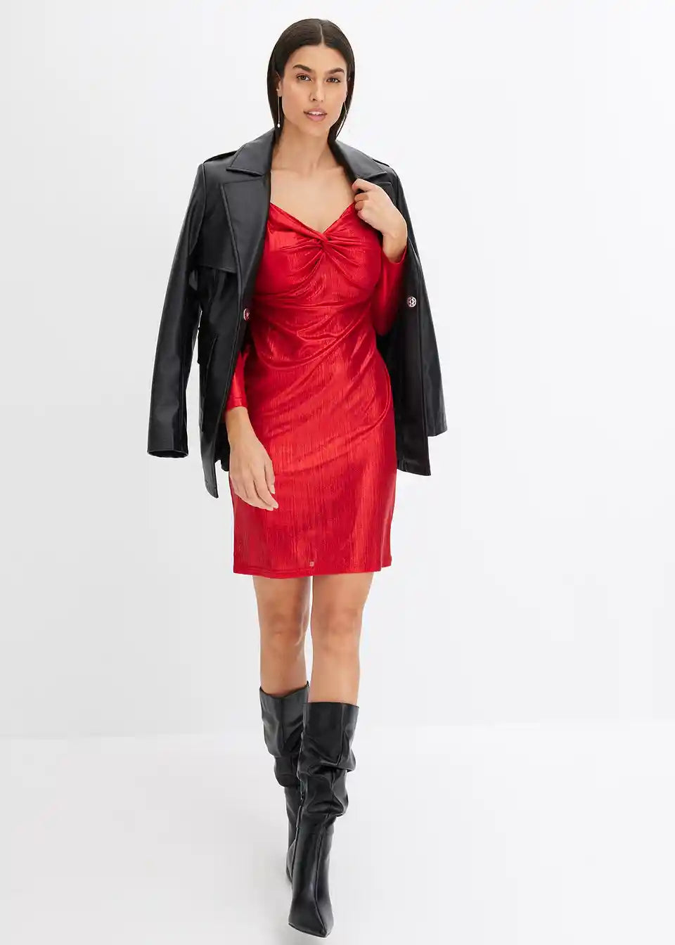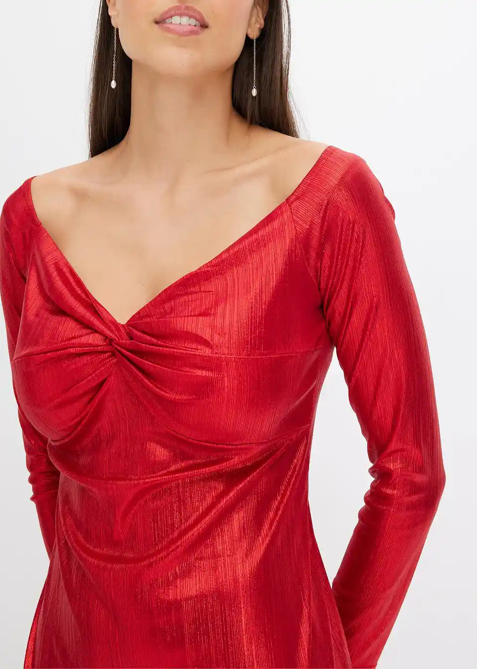 Stilsku haljinu s izvrsnim krojem i čvor-efektom u sjajnom izgledu