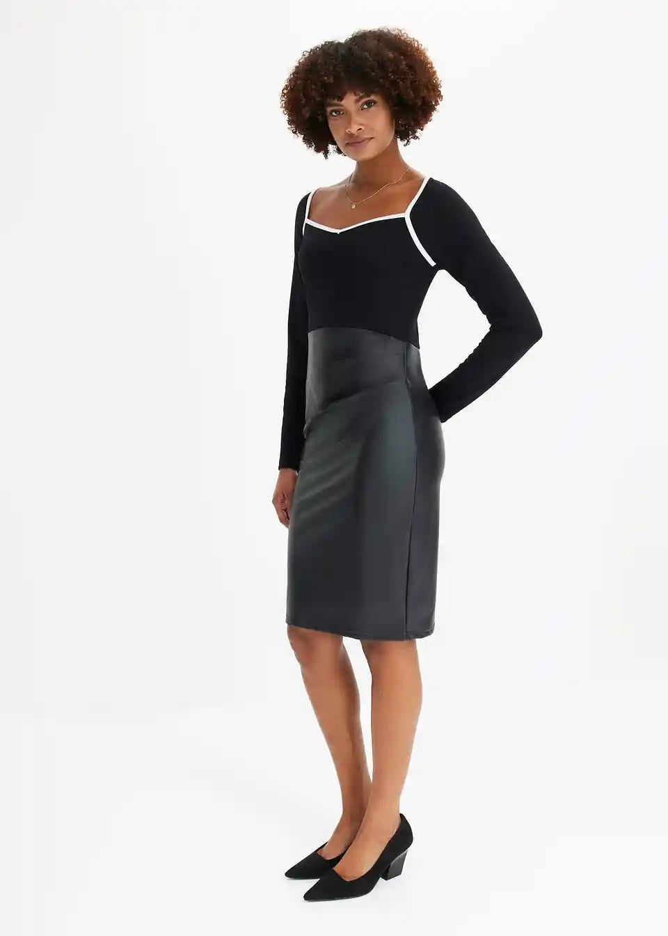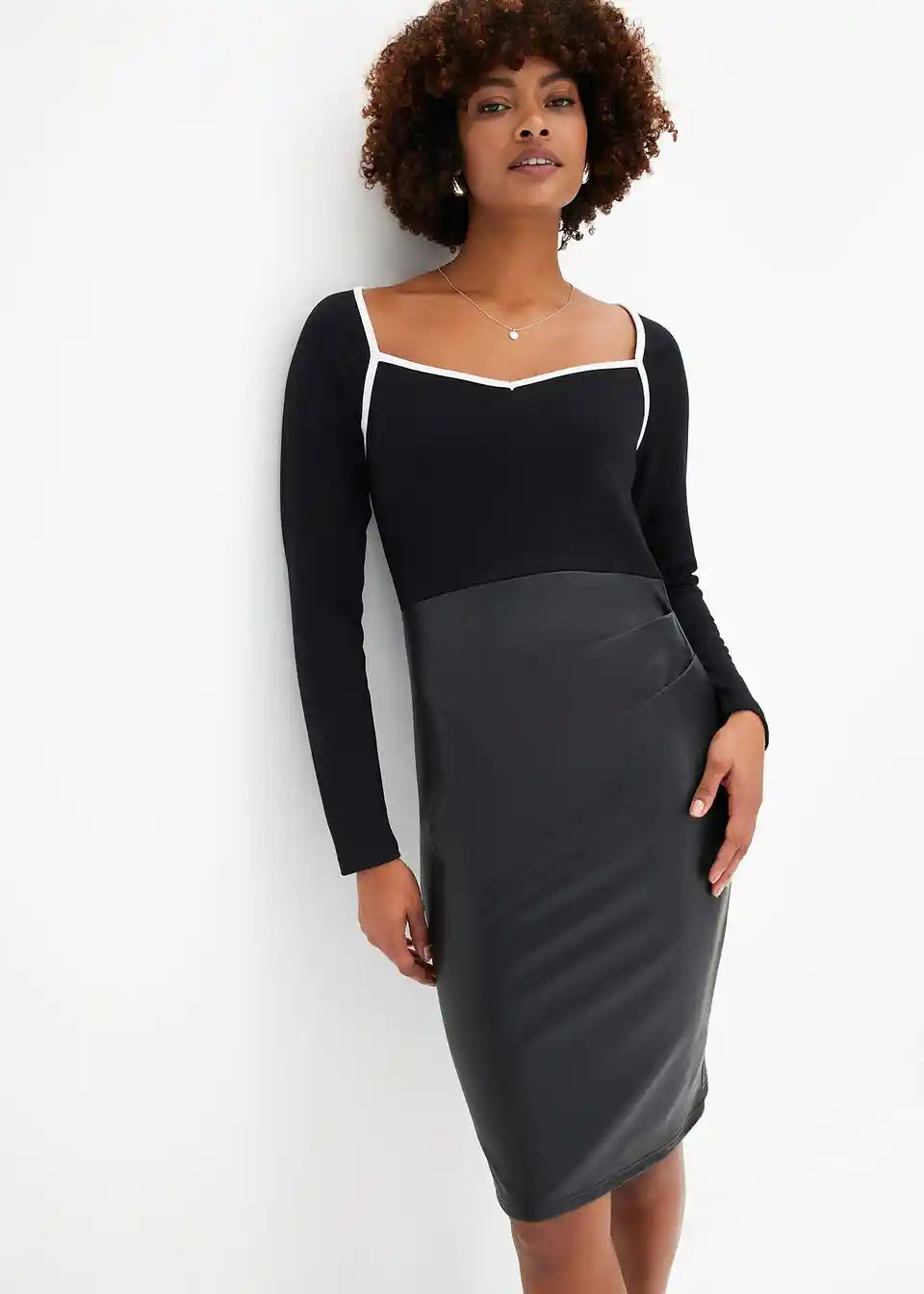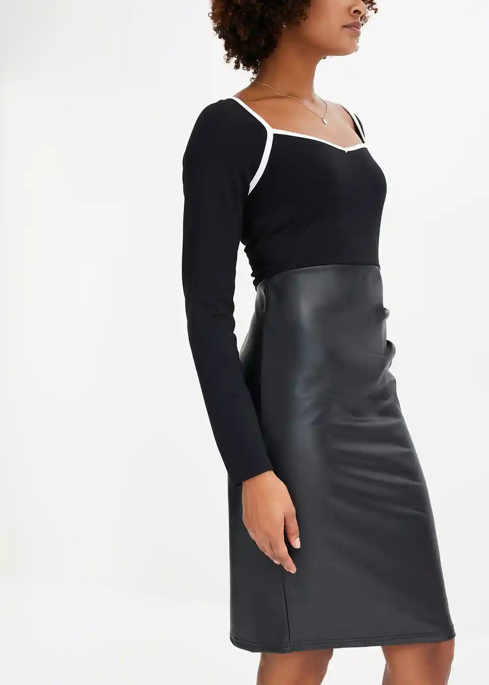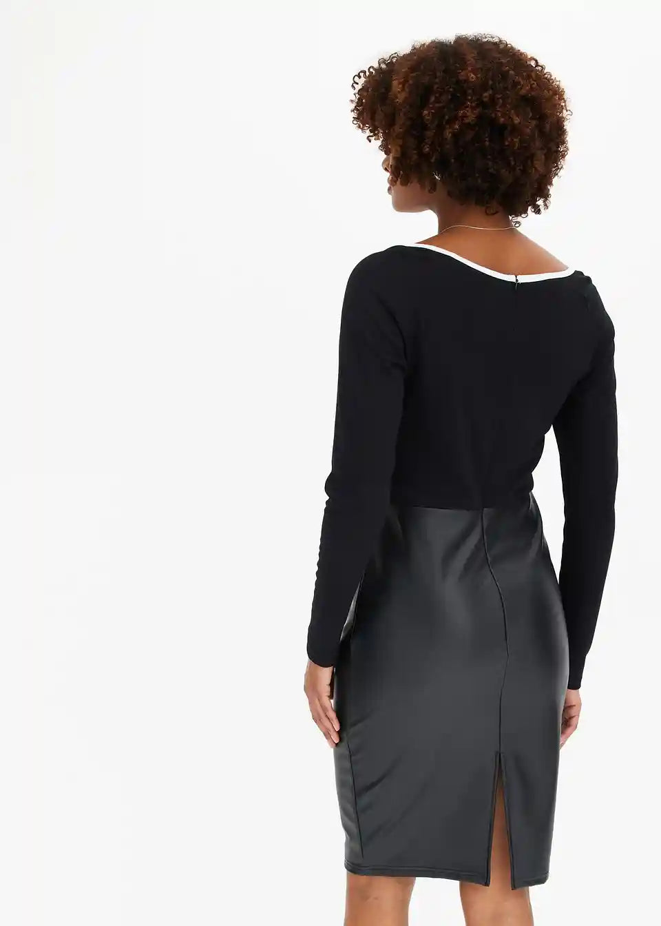 Uska haljina od jerseya s imitacijom kože