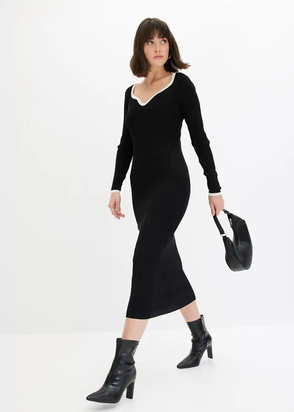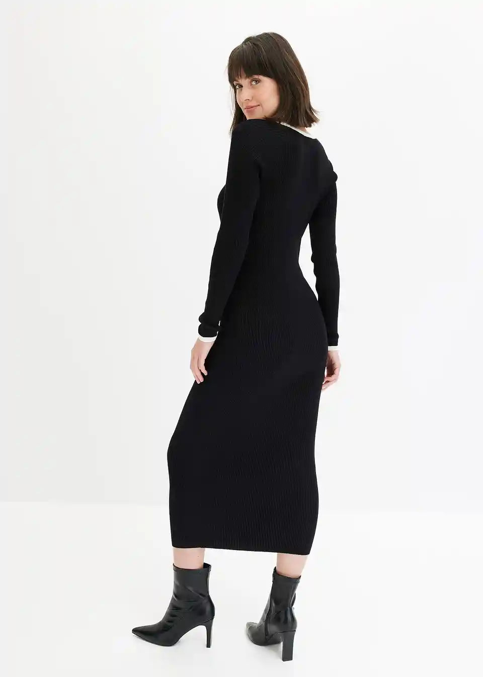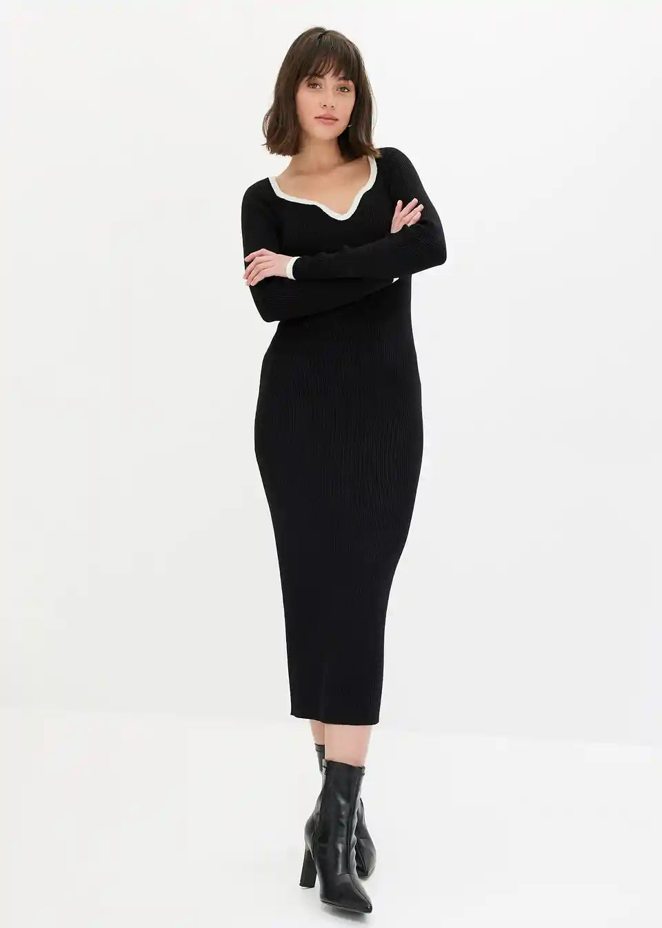 Pleteno Haljina s Kontrastnim Završetkom na Izrezu