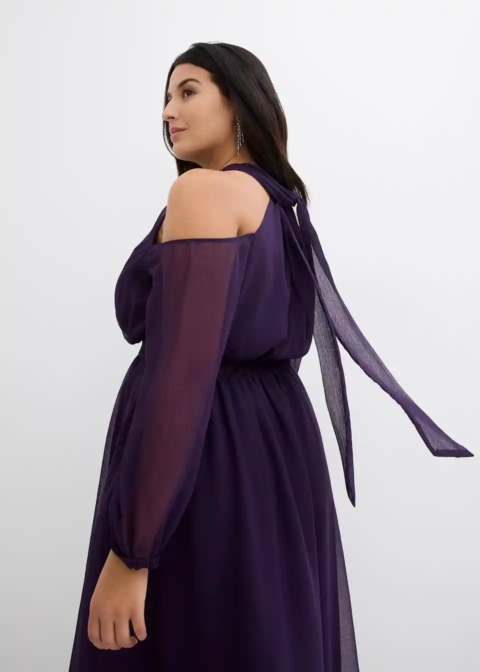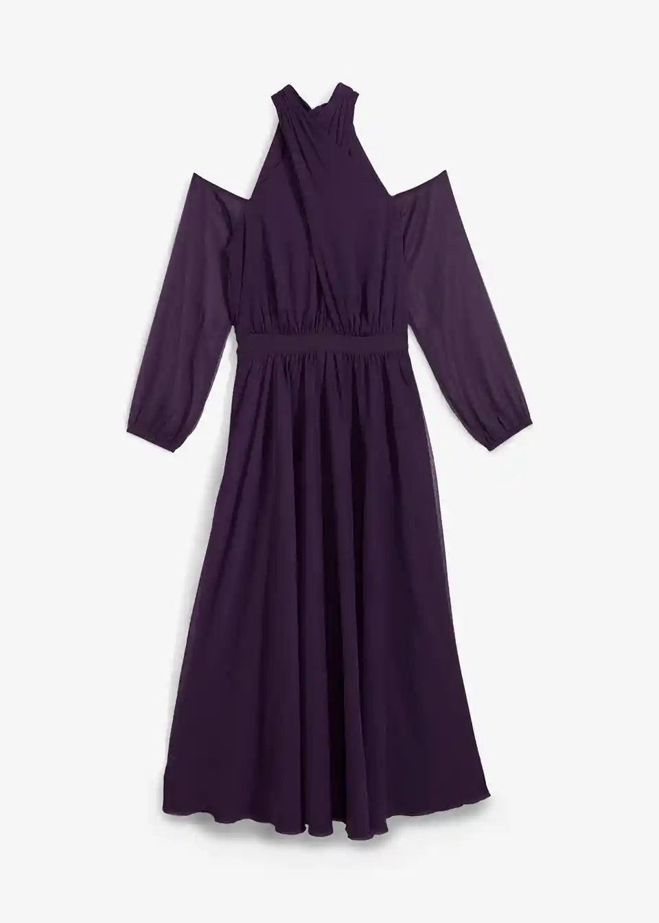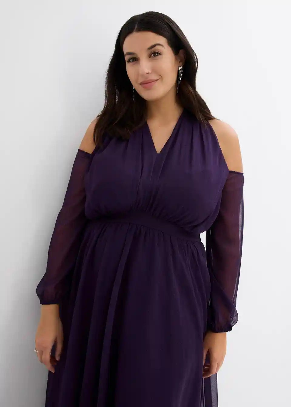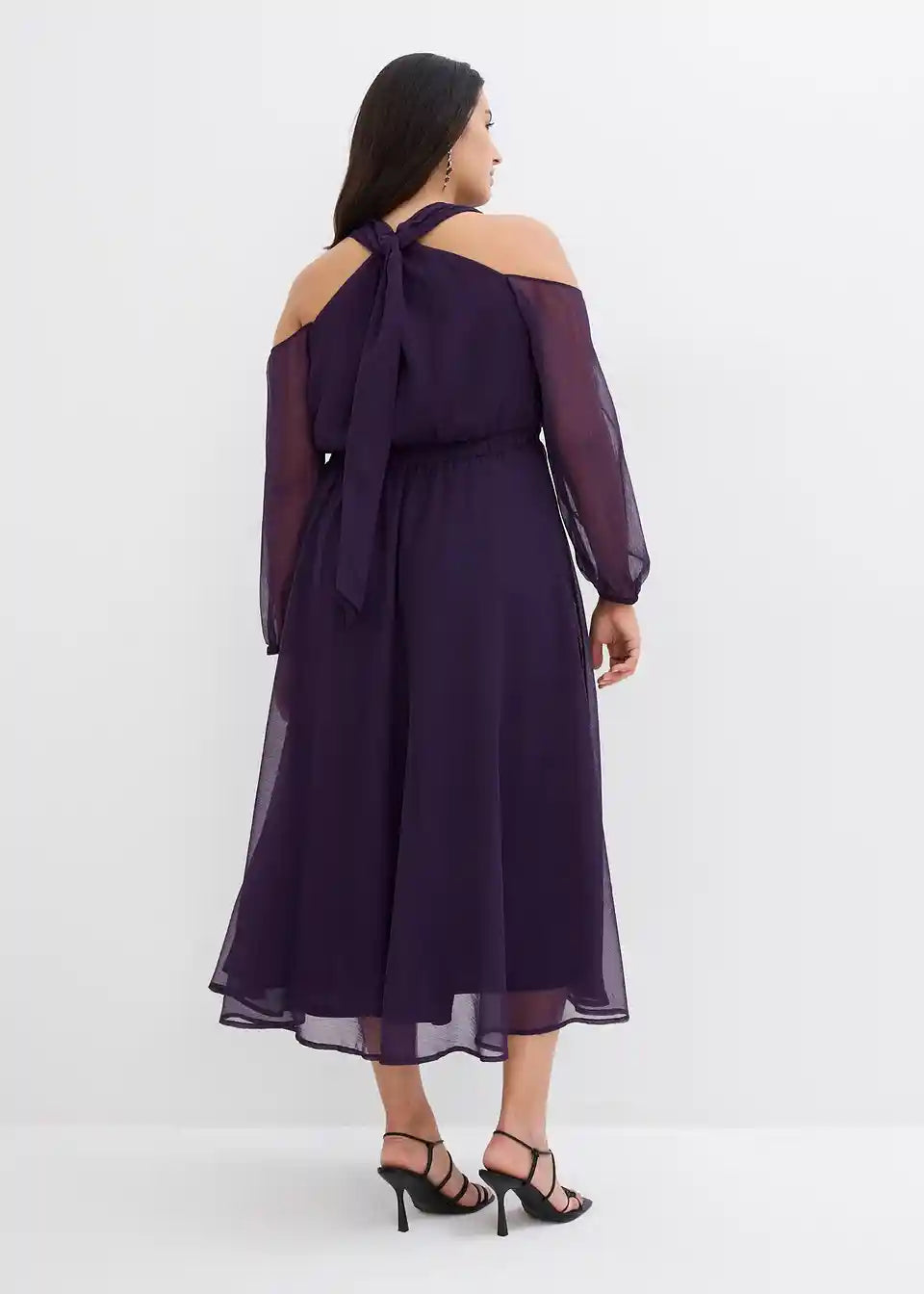 Elegantna večernja haljina s otvorenim ramenima od laganog šifona, potpuno podstavljena