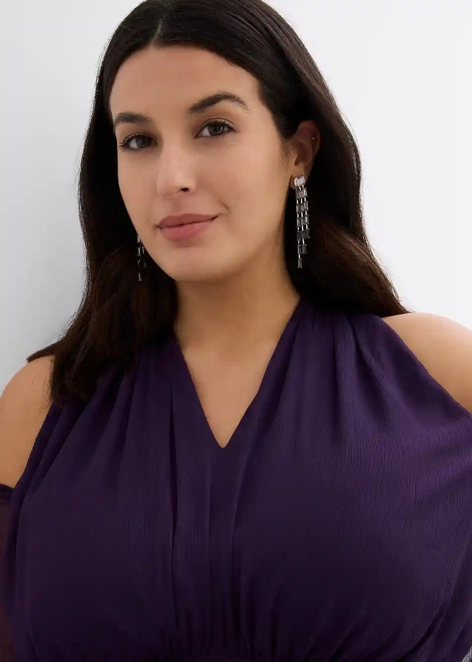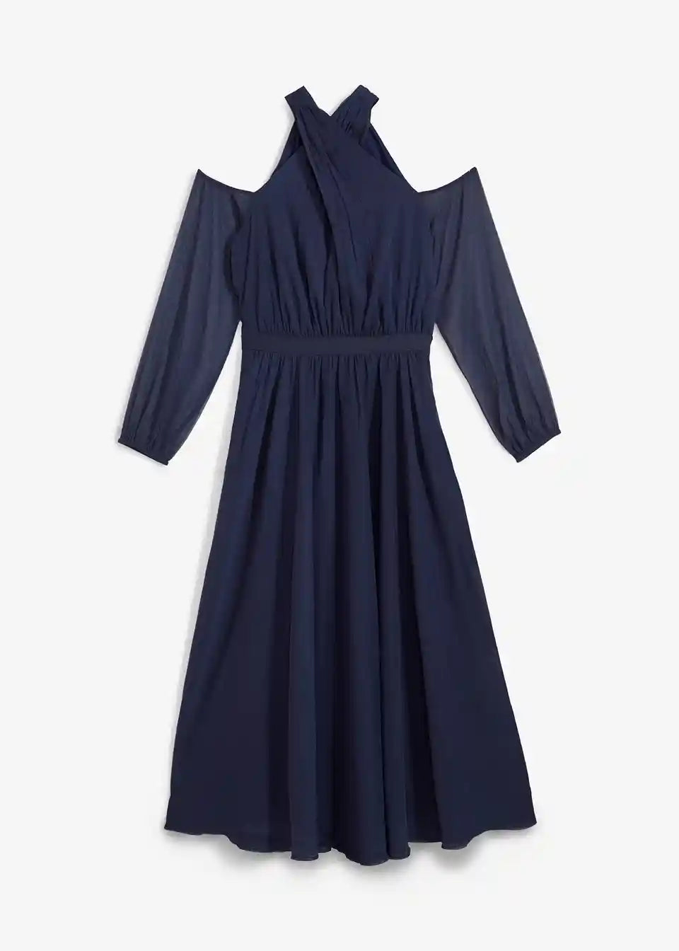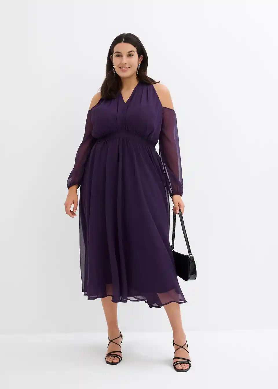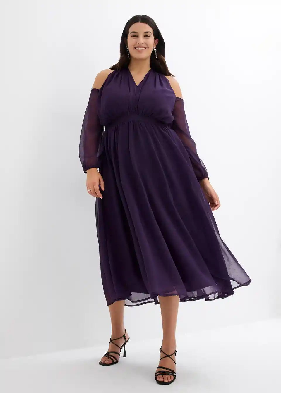 Elegantna večernja haljina s otvorenim ramenima od laganog šifona, potpuno podstavljena