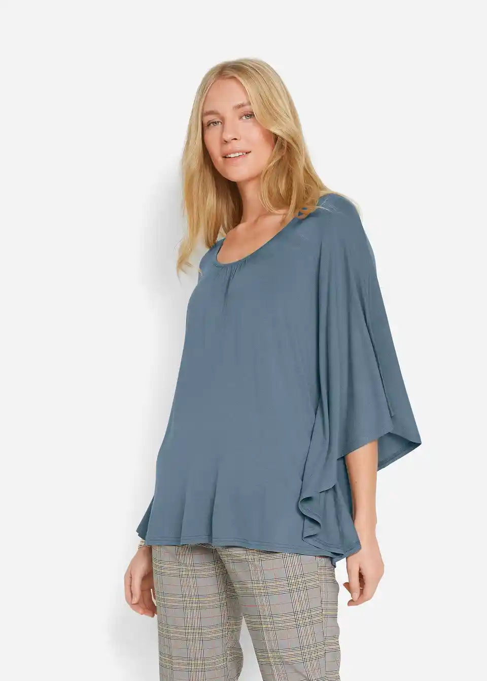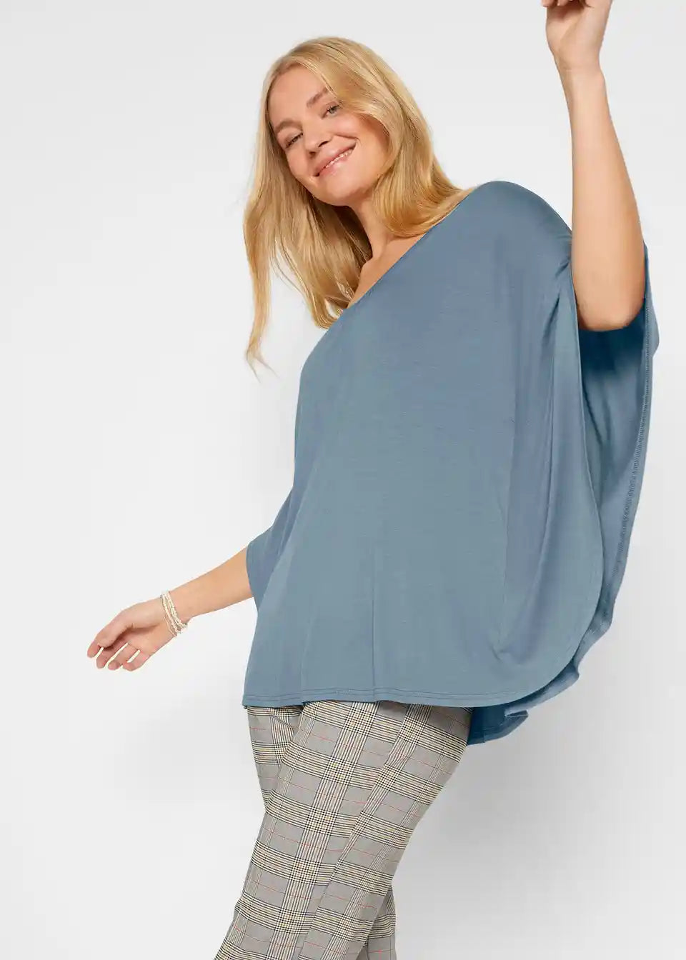 Ležerno krojena majica šišmiš kroja s povoljnim okruglim izrezom