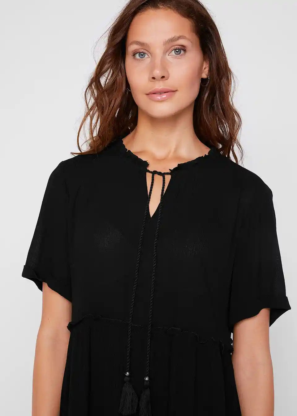 Do koljena duga haljina od nagužvanog viskoznog materijala s detaljem na izrezu
