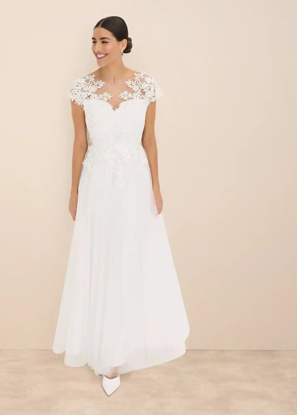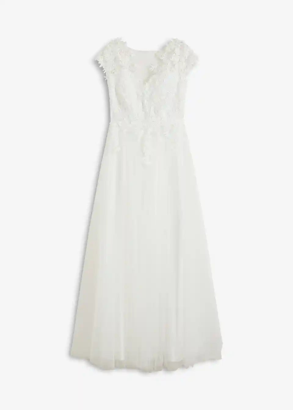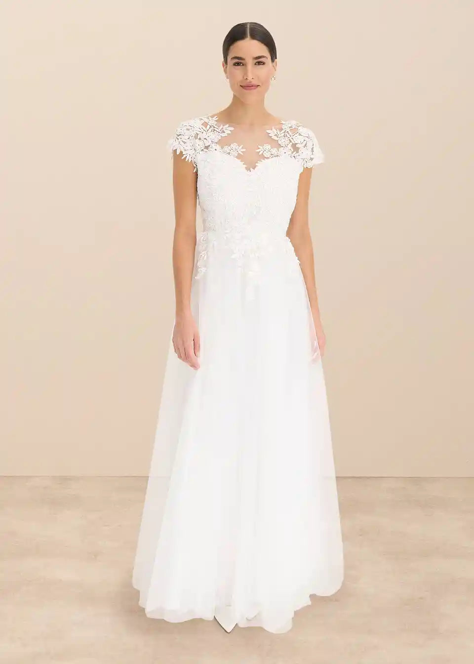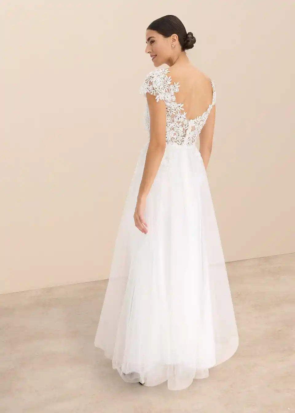 Romantična i ženstvena: vjenčanica od nježnog tila s čipkom na gornjem dijelu i mini rukavima