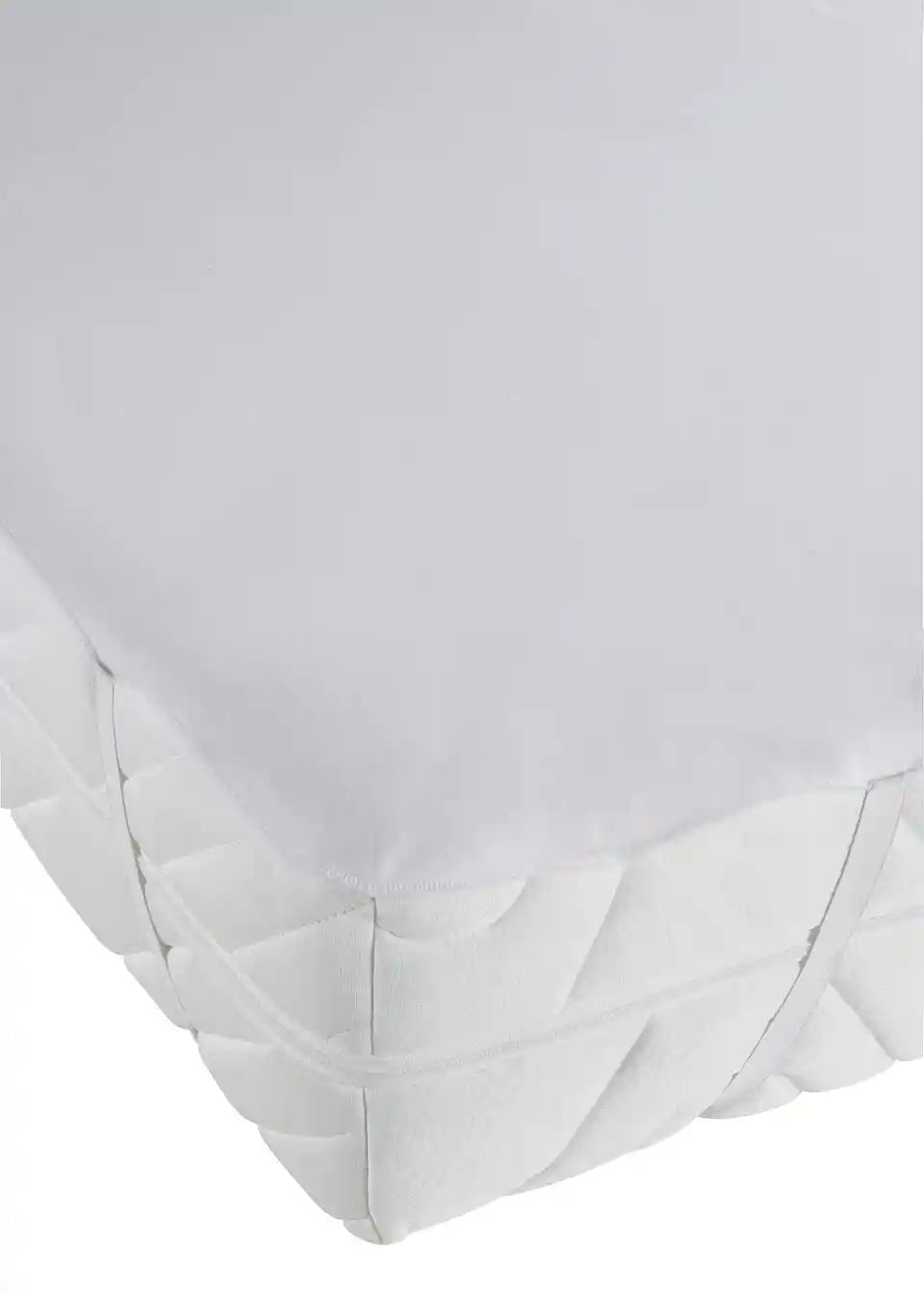 Stražnja strana je opremljena poliuretanskom membranom koja pouzdano sprječava prodor vlage u madrac. Četiri gumene trake u uglovima omogućuju jednostavno i sigurno pričvršćivanje nadložaka za madrac.