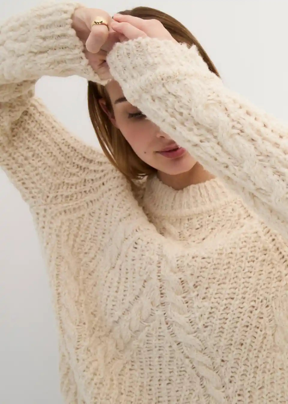 kvalitetan vuneni pulover od flame pređe u vrhunskoj kvaliteti, s modernim uzorkom pletenica