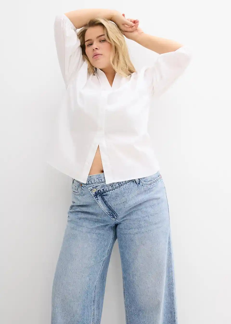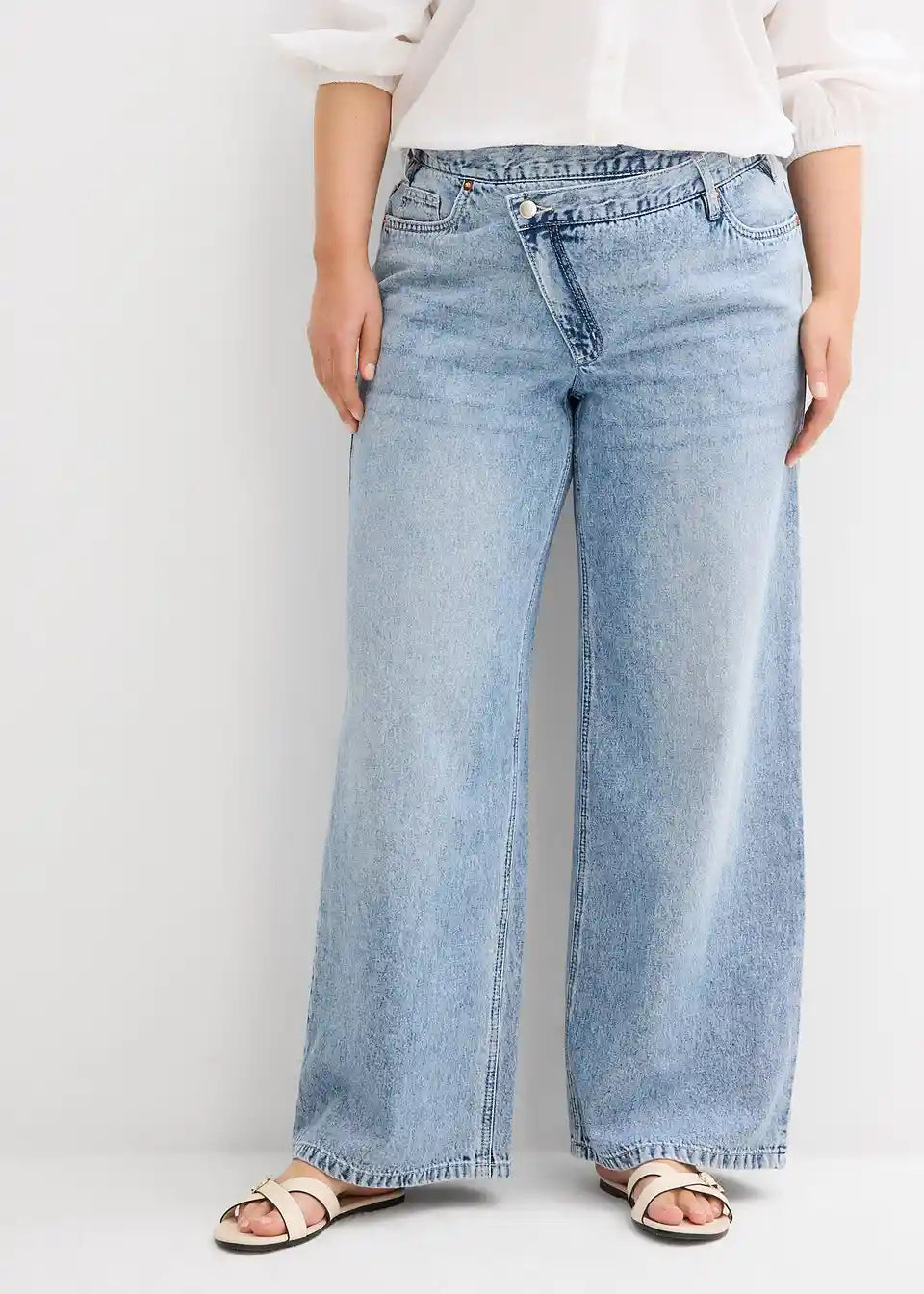 Wide-Leg-Jeans Mid Waist s posebnim pojasom