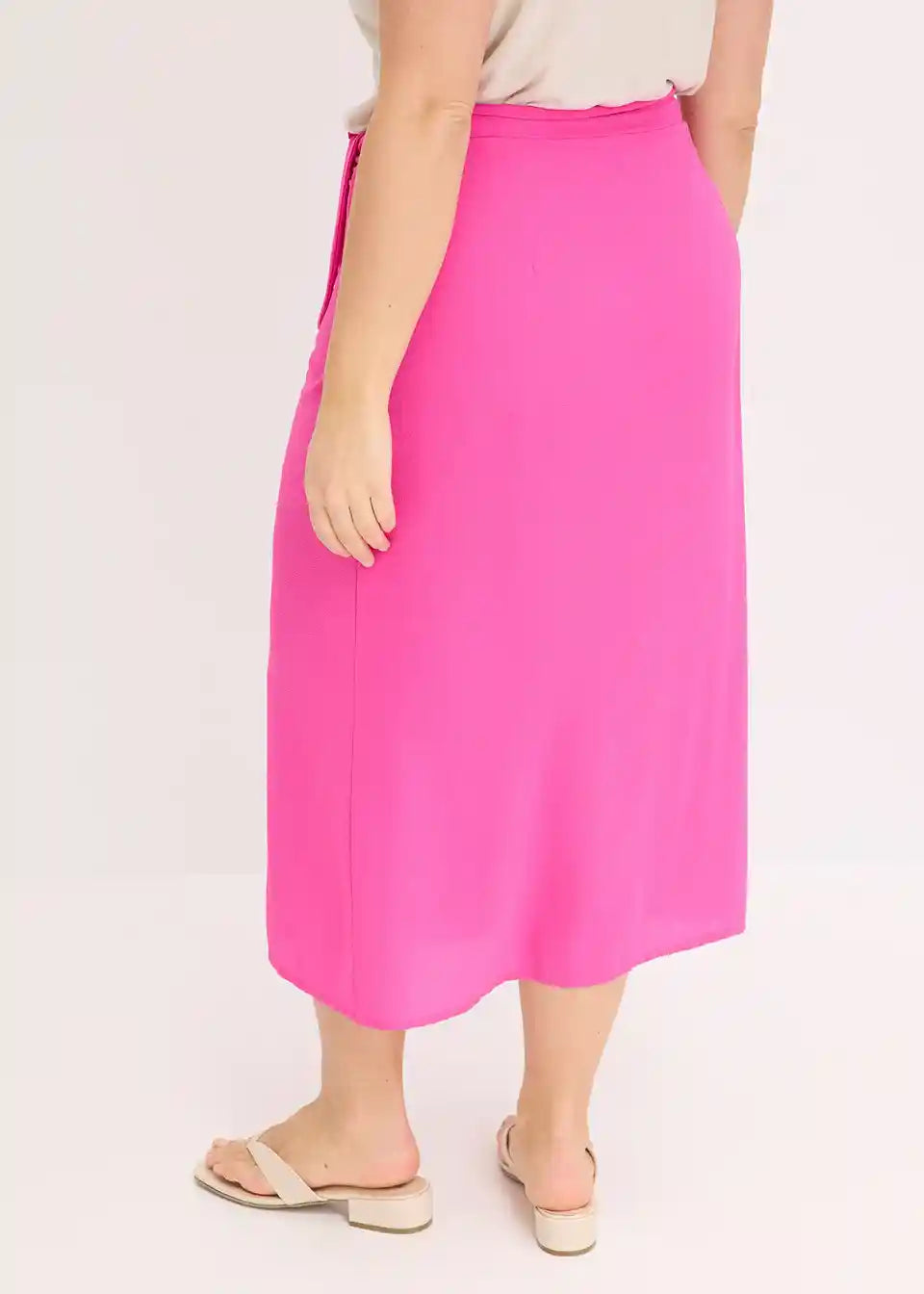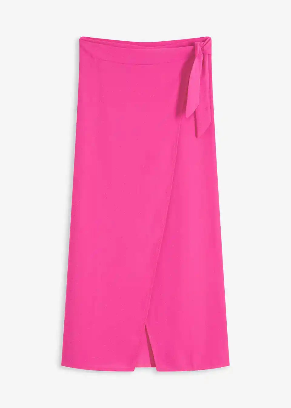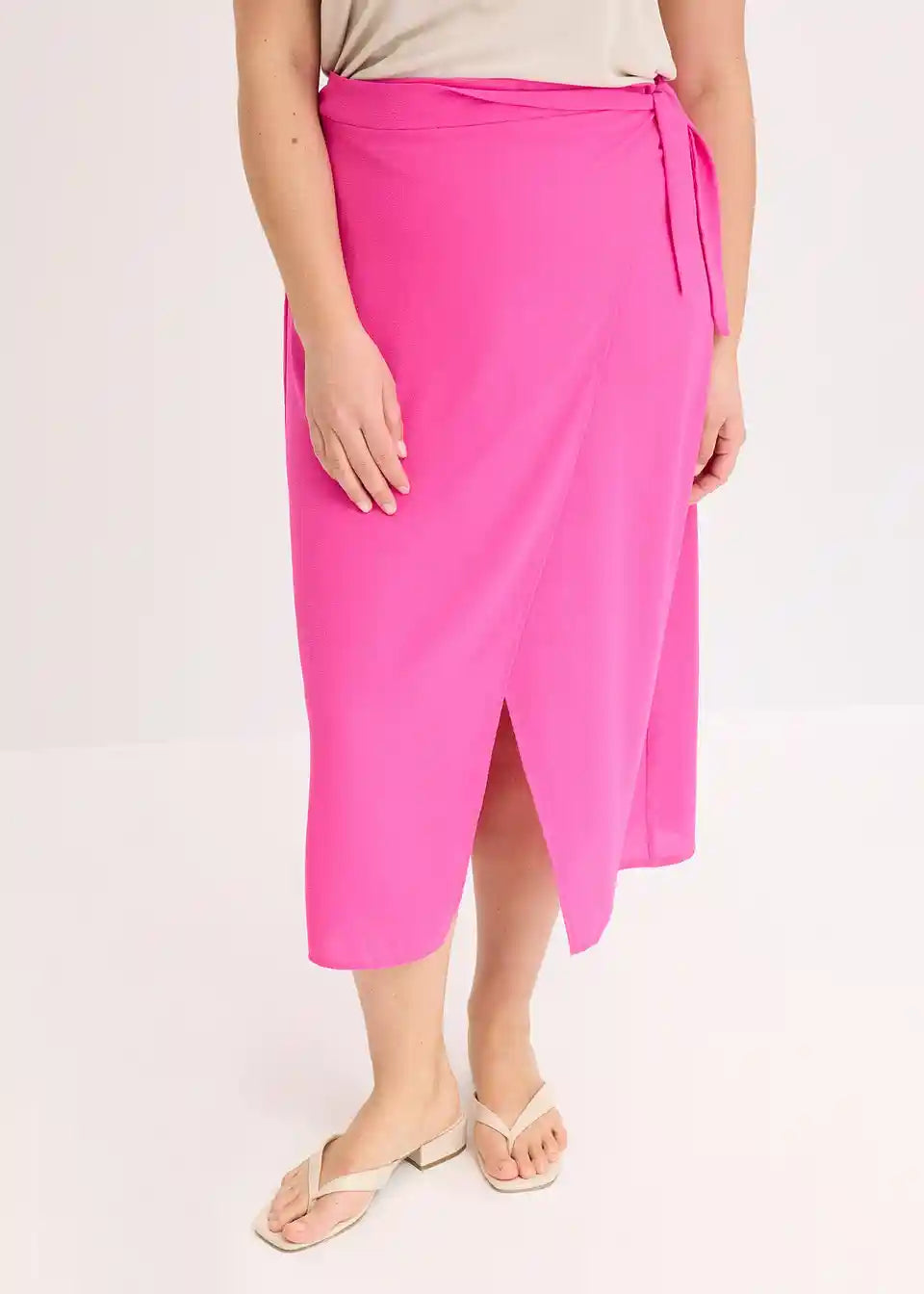 ženstvena wrap suknja midi dužine s bočnim vezanjem i unutarnjim kopčanjem na gumb