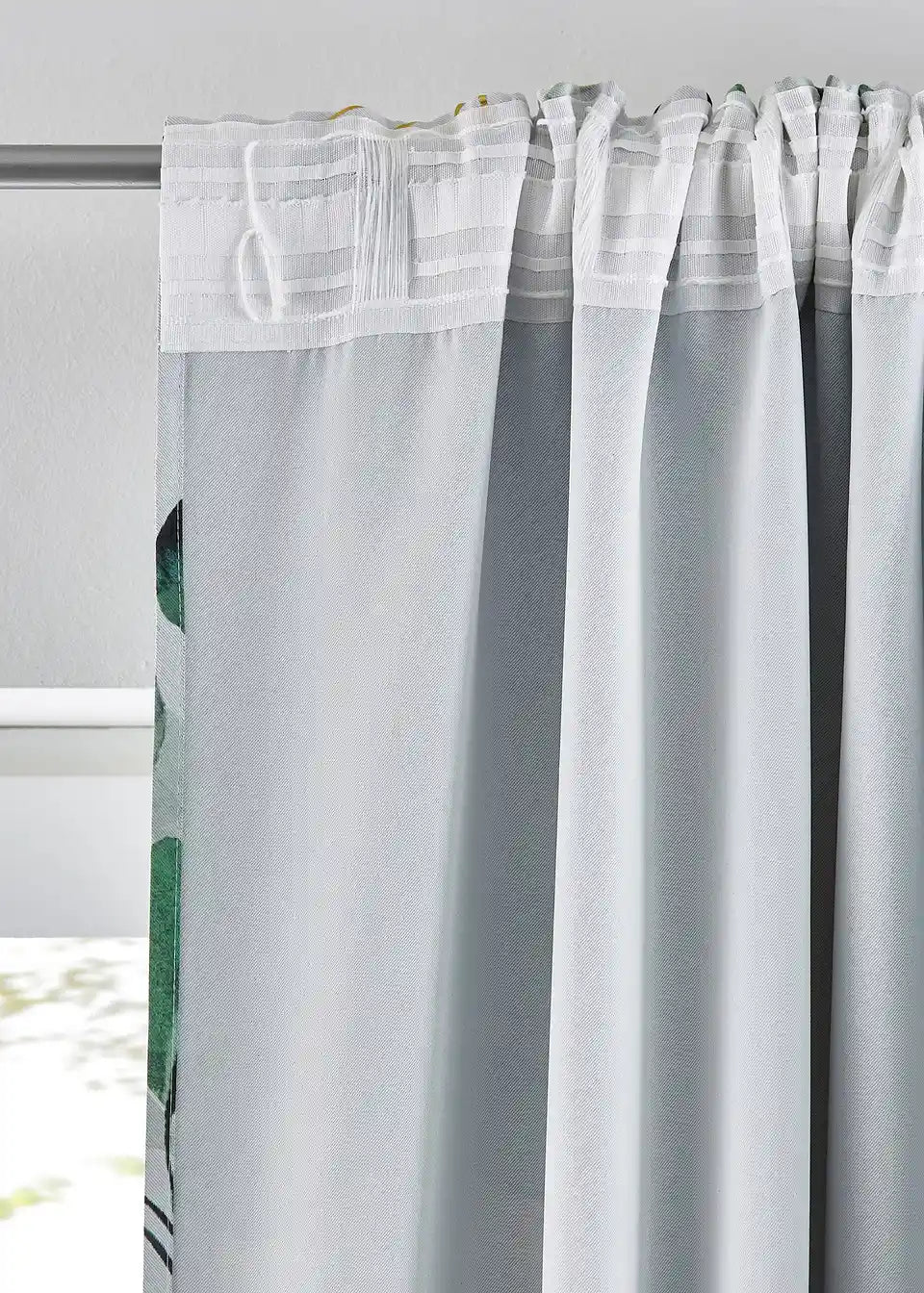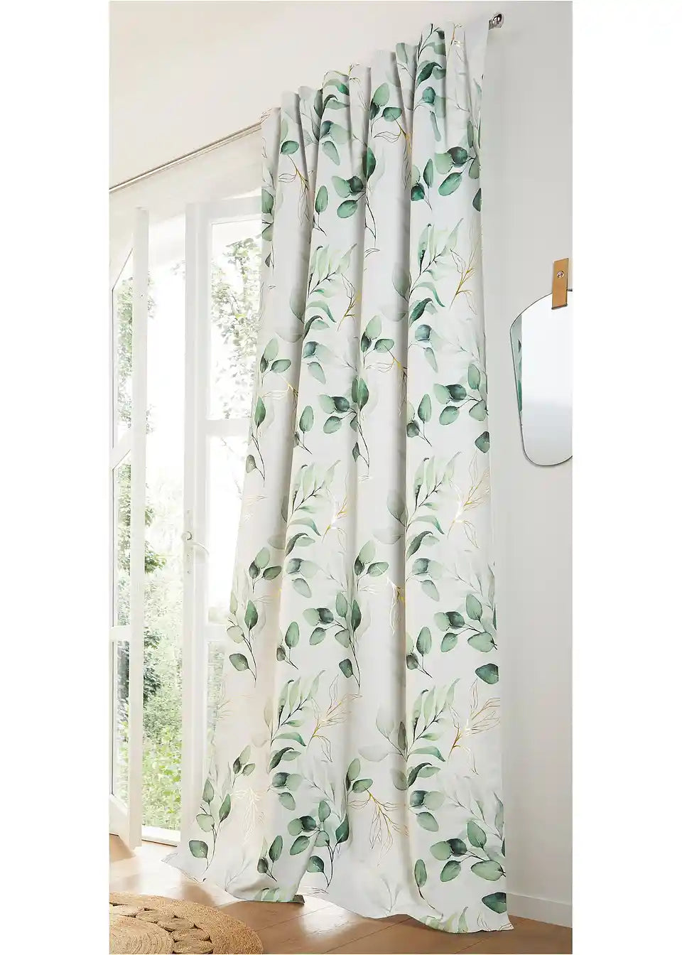 Zavjesa izrađena od teške tkanine s printom listova. Pravi ukras za vaš dom! Idealna je za spavaću sobu jer tkanina zamračuje prostoriju. Zavjesa može djelovati kao zvučna izolacija i toplinska izolacija, smanjujući tako buku i štedi energiju jer štiti od hladnog propuha.