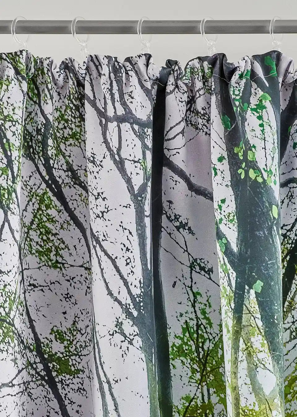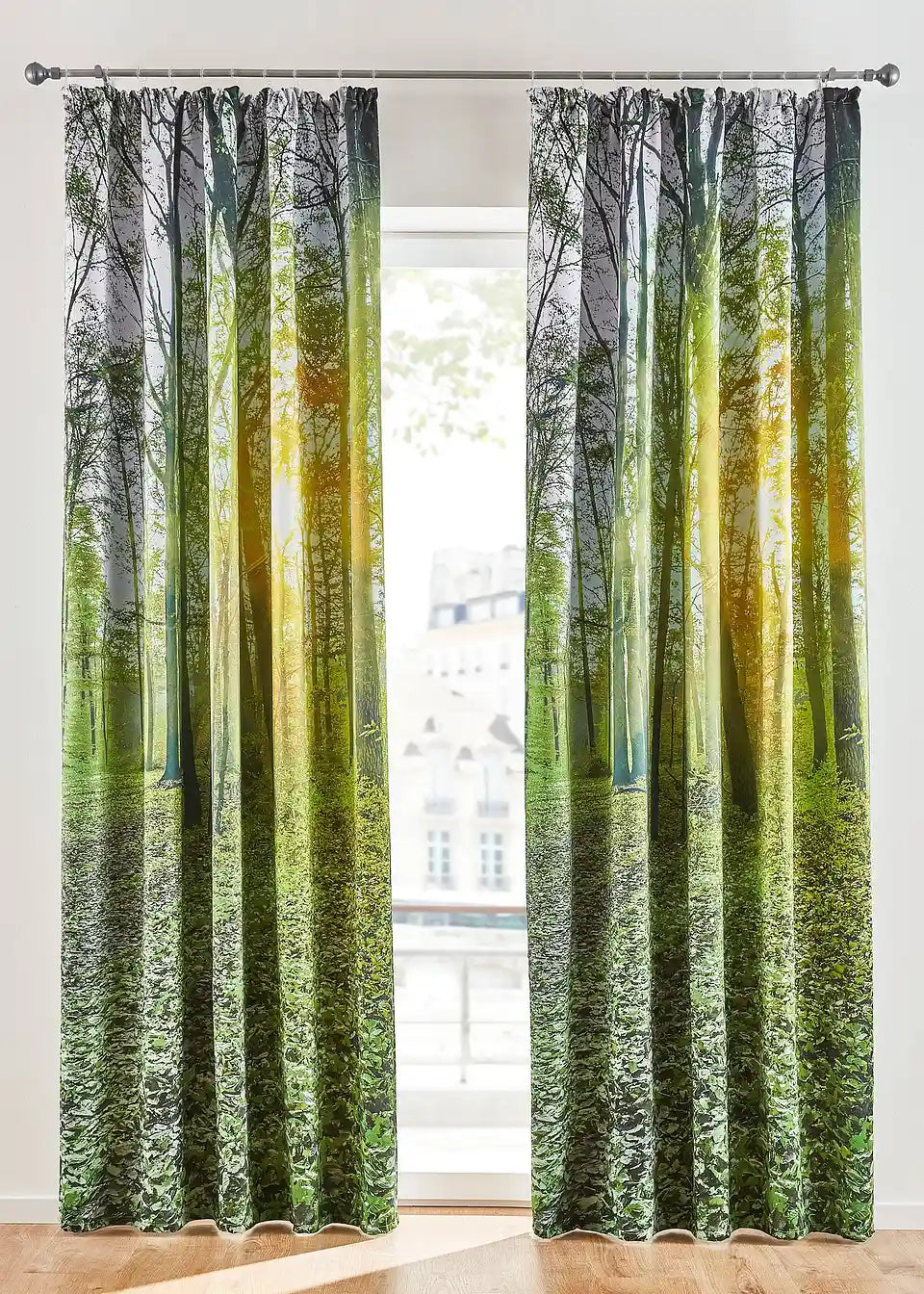 Želite li imati prirodu izravno u svojim životnim prostorijama? Onda je ova zavjesa za zatamnjenje savršen izbor za vas! Zavjesa može apsorbirati zvuk i izolirati toplinu, smanjujući buku i štedeći energiju jer štiti od hladnog propuha. Idilični motiv šume apsolutni je vizualni privlačitelj. Prednja strana je digitalno otisnuta, dok je stražnja strana svijetla i bez uzorka. S ovom zavjesom na vašem prozoru osjećat ćete se kao da ste u šumi.