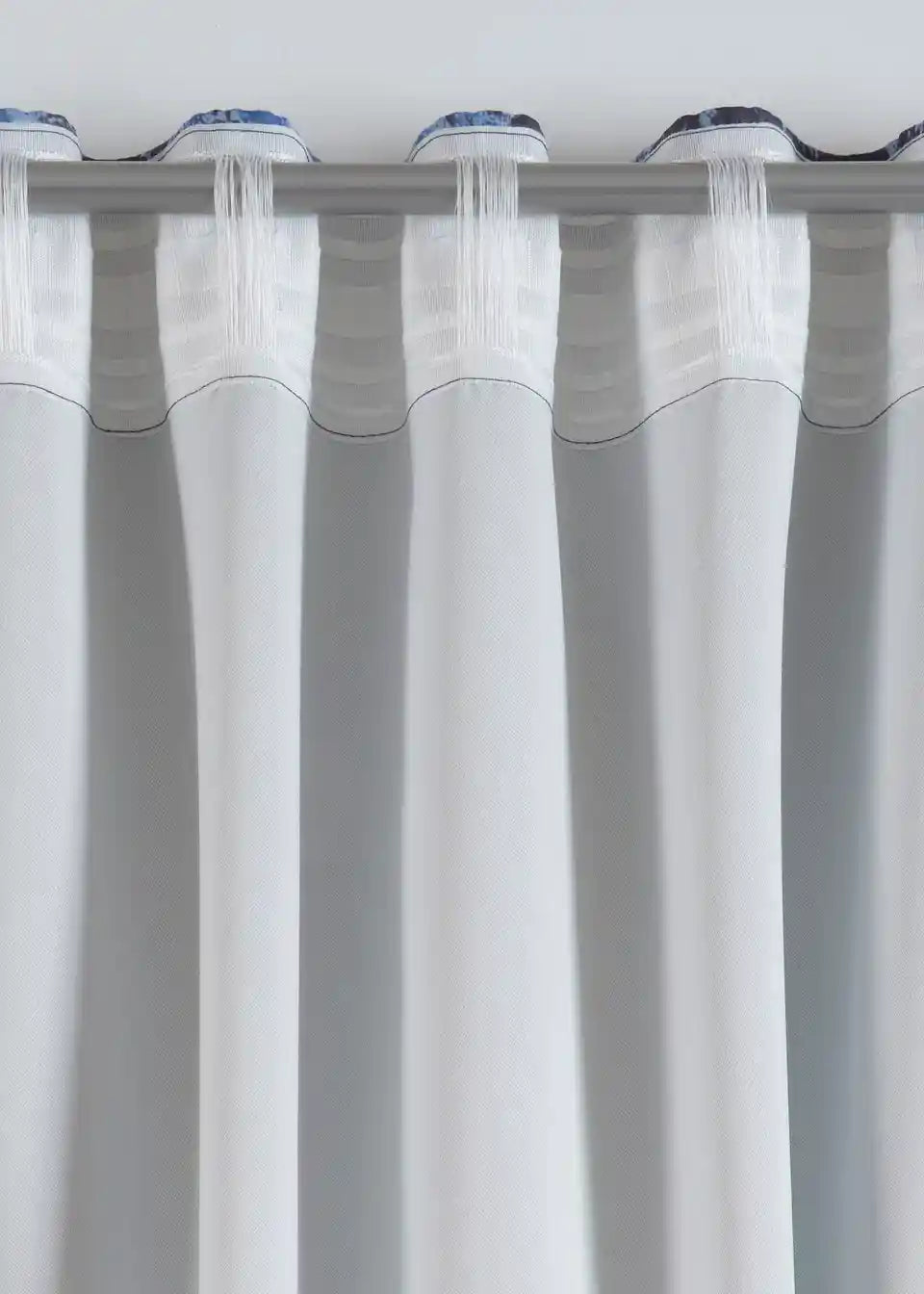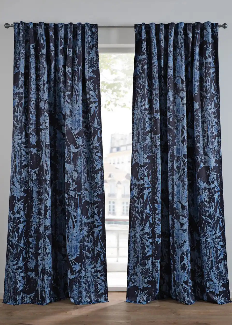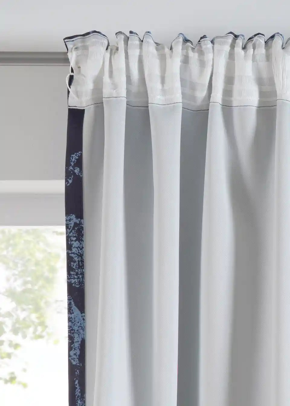 Zavjesa od visokokvalitetne poliesterske tkanine zatamnjuje tvoje prostorije i tijekom dana pruža lijep i moderan okvir za tvoj prozor. Print se nalazi na prednjoj strani. Stražnja strana je bez uzorka.