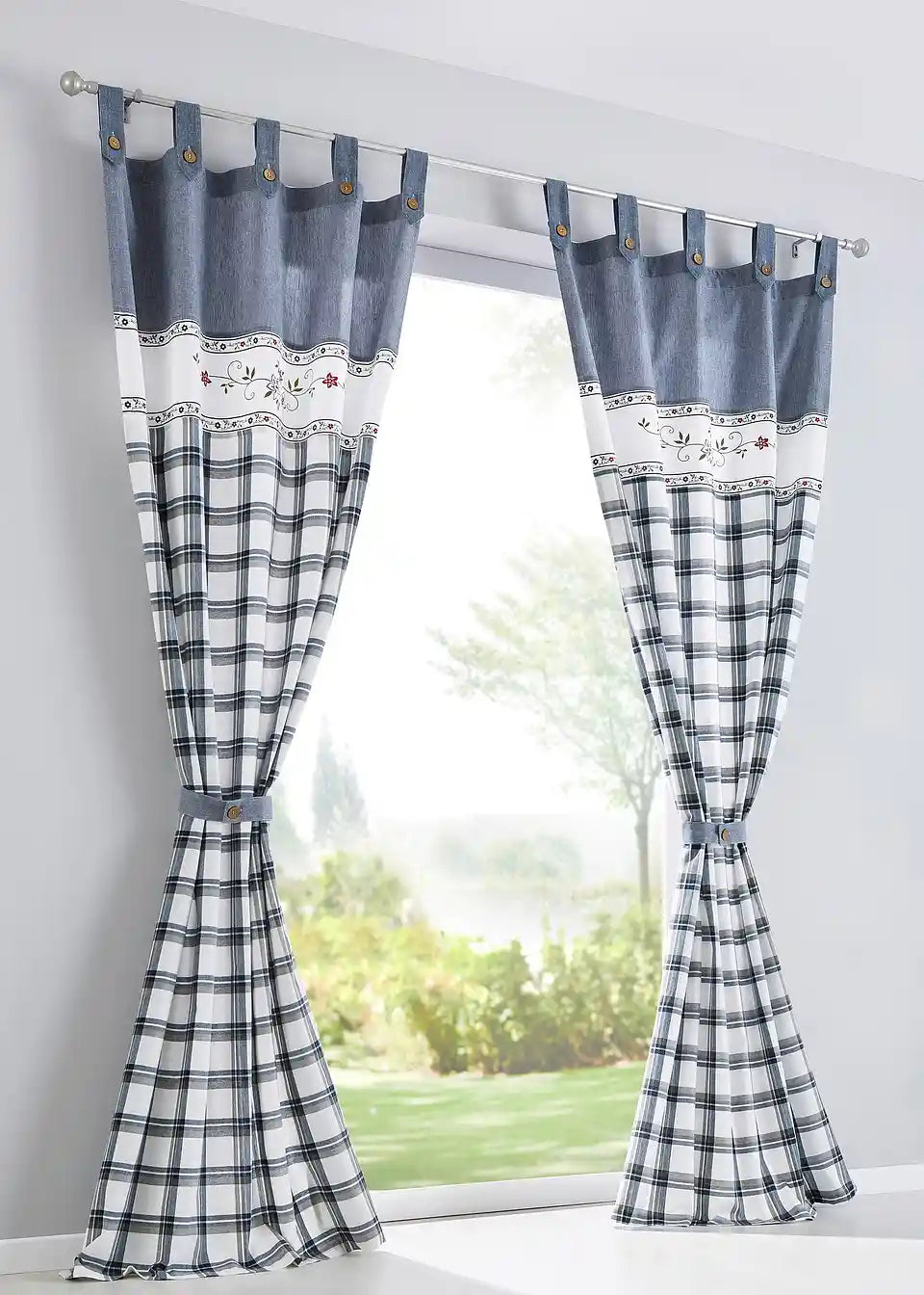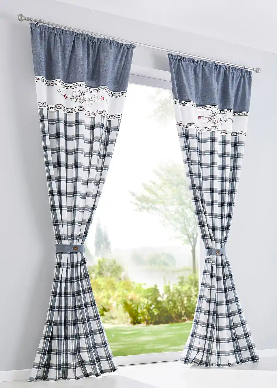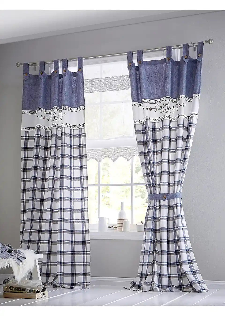 Prekrasna zavjesa u seoskom stilu s kariranim uzorkom uključujući držač za skupljanje