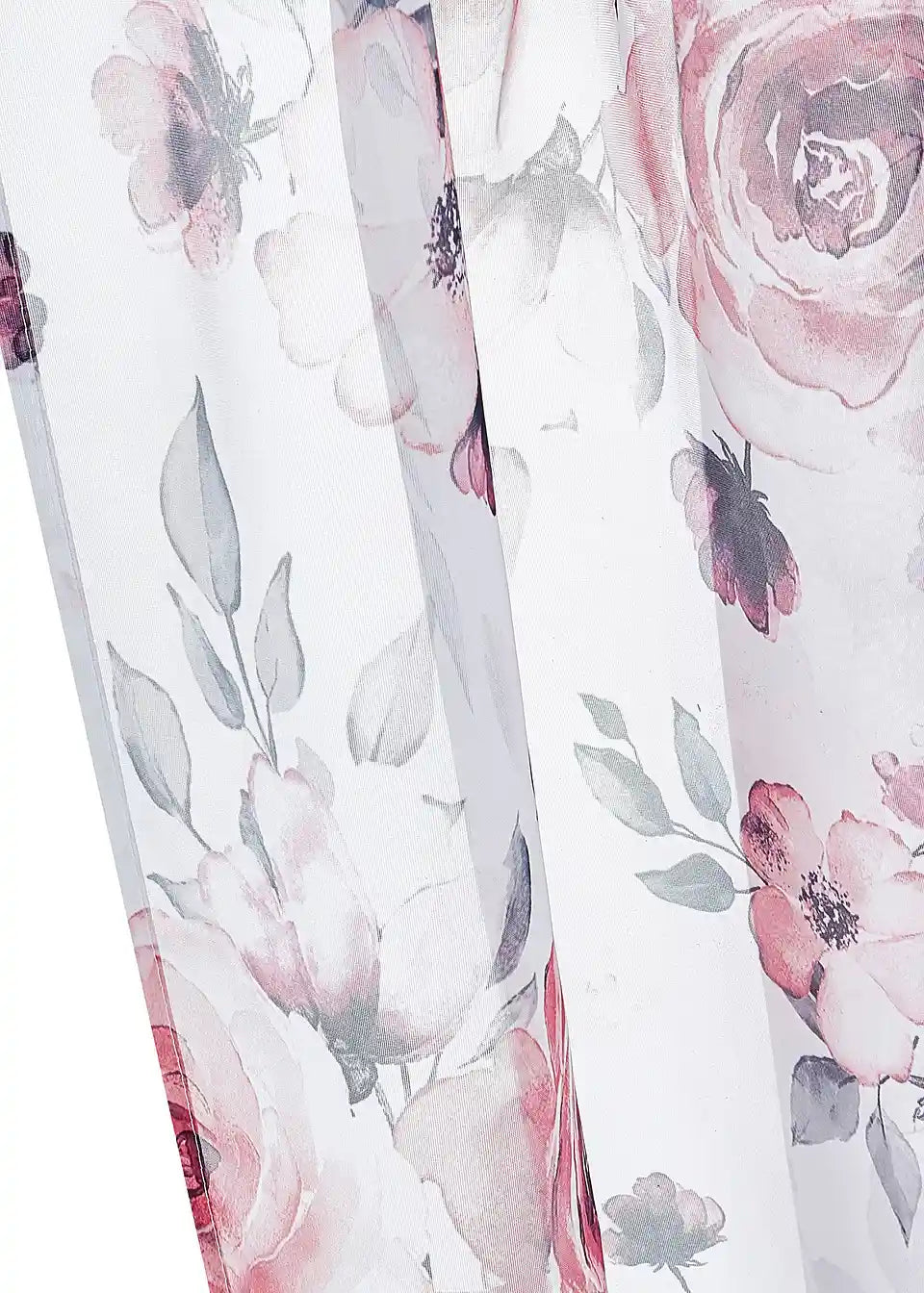 Lagana zavjesa s prekrasnim cvjetnim uzorkom. Fino voile tkanje koje propušta svjetlost u tvoje prostorije, a istovremeno pruža laganu zaštitu od pogleda. Boje su svježe proljetne, stvarajući skladan ukupni dojam. Jednostavno savršena ova zavjesa s cvjetovima.