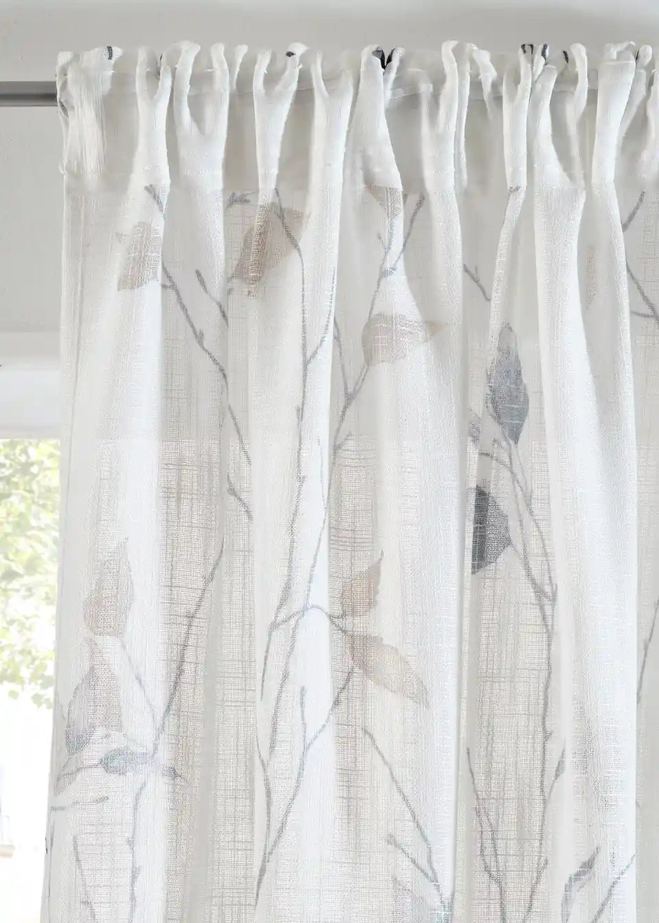 Donesite prirodu u svoj dom s našim stilskim zavjesama koje prikazuju elegantan uzorak grana. Izrađeno od recikliranog poliestera, spojite održivost s bezvremenskim dizajnom.