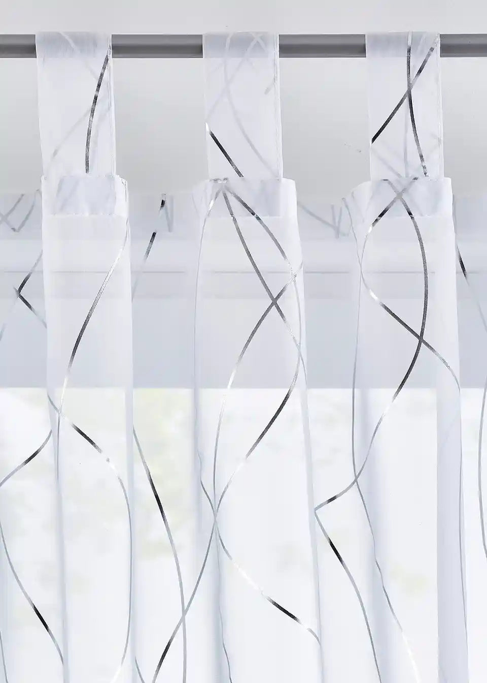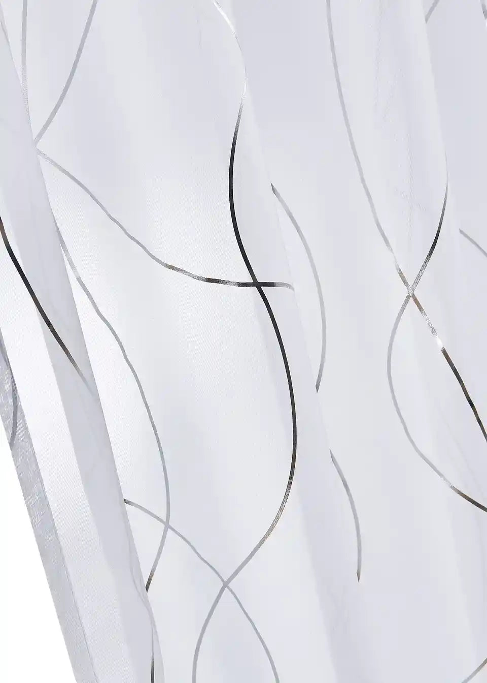 Izuzetno uzorkovanje s odličnim efektima u ugodnim bojama postignuto je ovom zavjesom. Prozirni voile je otisnut sjajnim valovima, koji su na stražnjoj strani zavjese u srebrnoj boji i tako impresioniraju i izvana. S ovom zavjesom tvojoj dekorativnoj mašti nema granica.