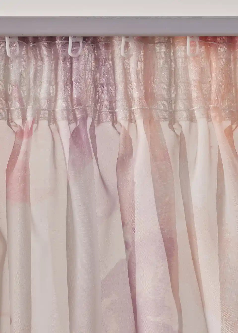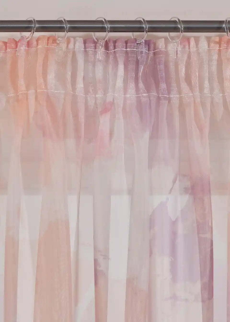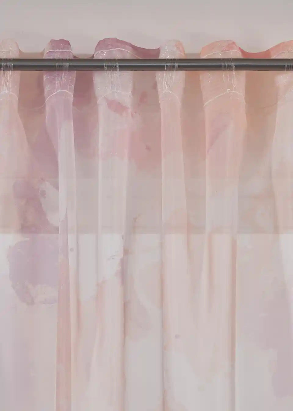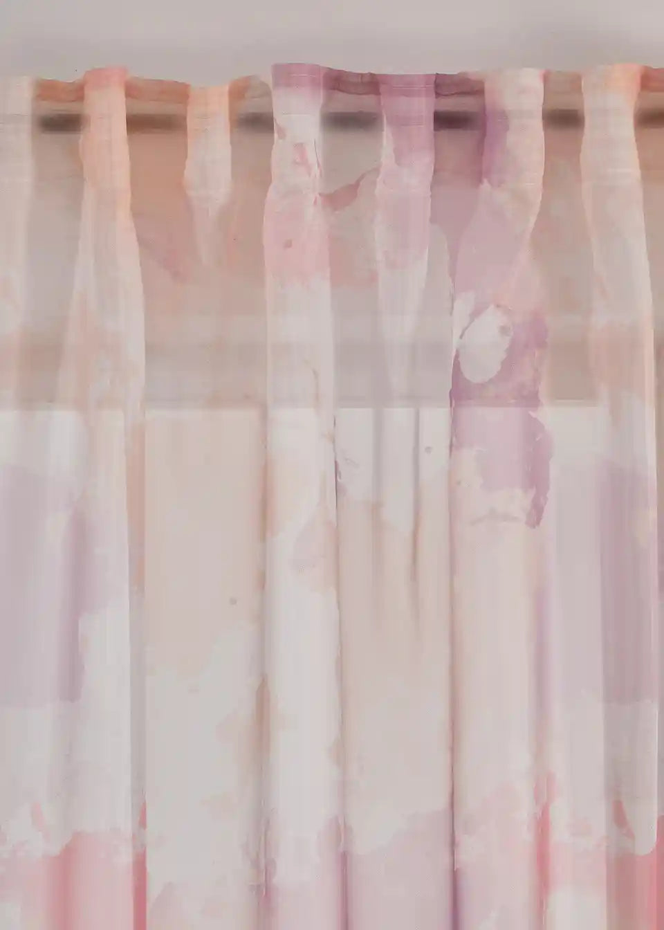 Prozirna zavjesa u praktičnom 2-dijelnom paketu s modernim tiskom. Lagana i prozračna voile tkanina.