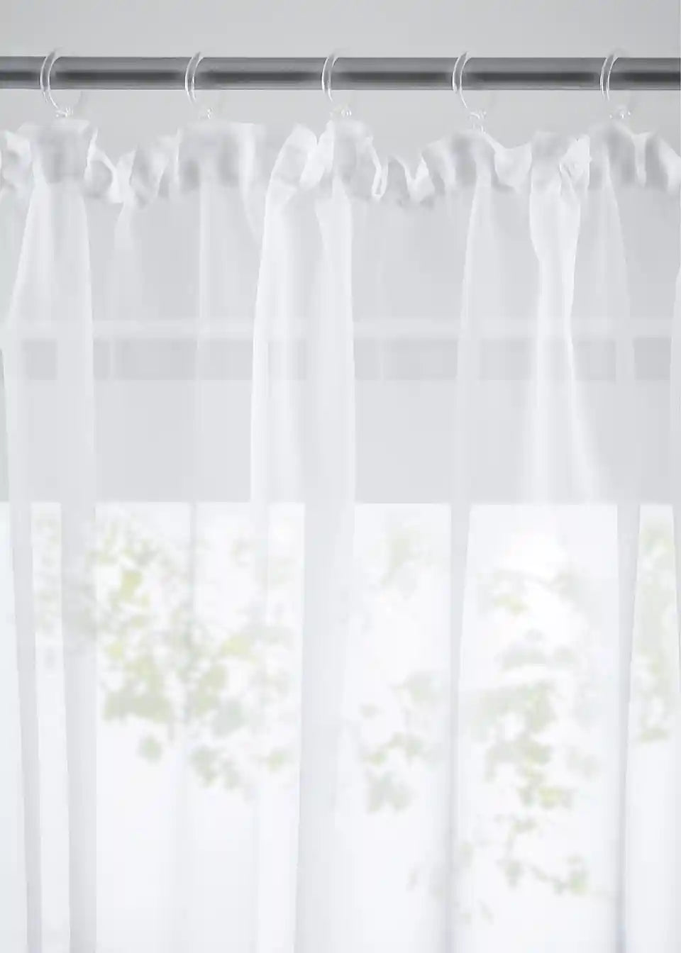 Ova zavjesa impresionira svojom jednostavnošću. Dekoracija za prozore izrađena od finog voilea dobiva prekrasan pad zahvaljujući ugrađenoj diskretnoj traci za opterećenje. Preporučujemo naručiti trostruku širinu prozora.