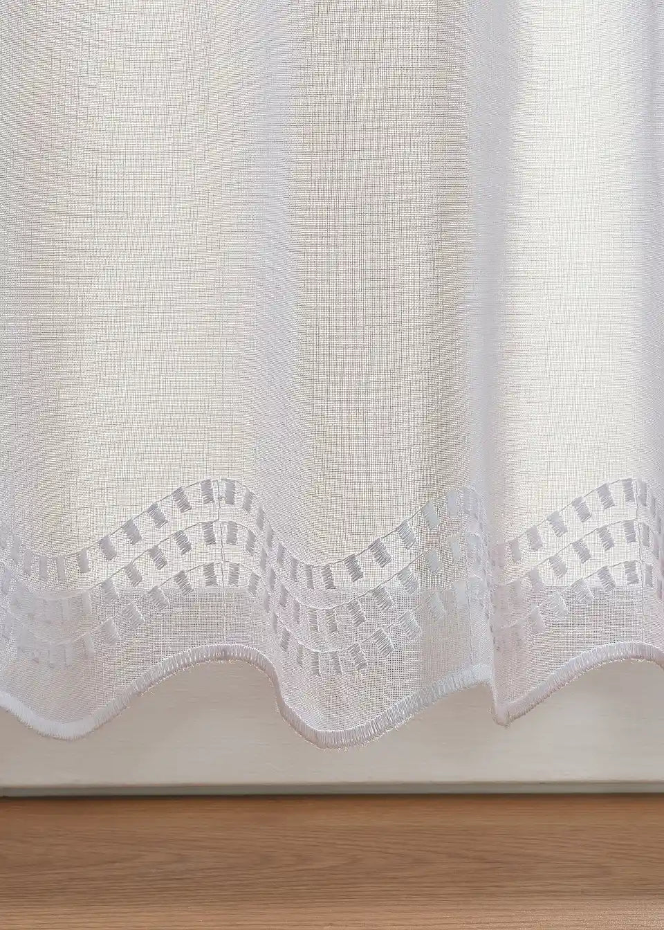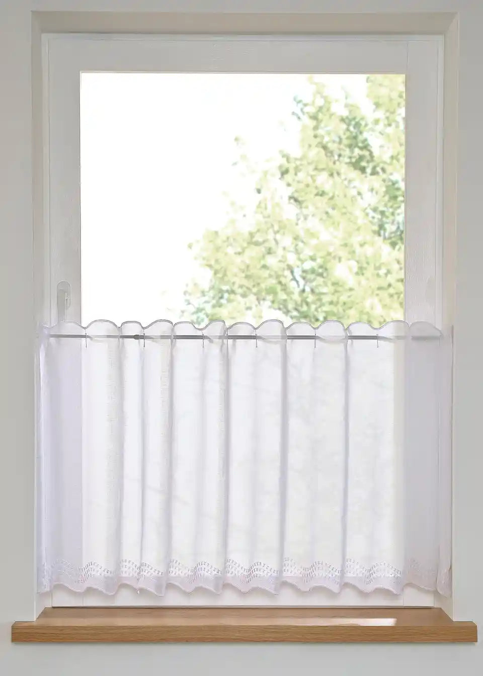 Kuhinjska zavjesa u bijeloj boji s diskretnim vezom pristaje gotovo svakoj kuhinji i ukrašava tvoj prozor na suptilan način.