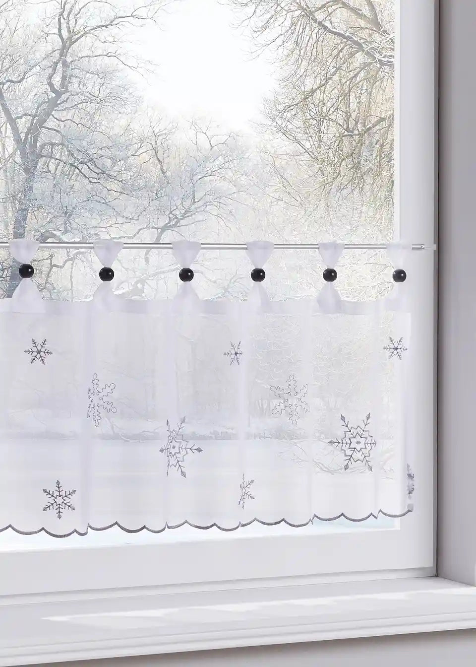Zavjesa za prozor s vezom pahuljica za božićnu atmosferu!