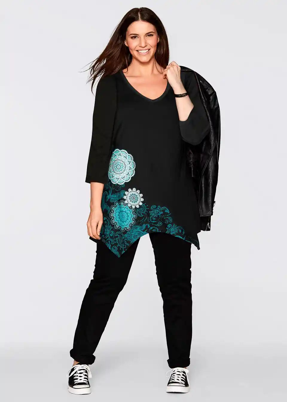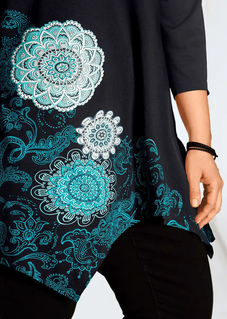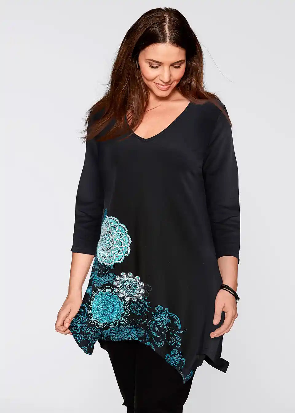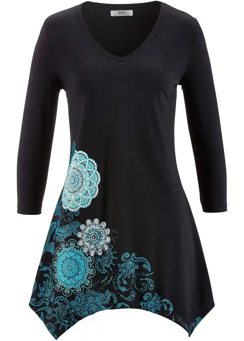 Duga majica asimetrične linije s V izrezom i 3/4 rukavima