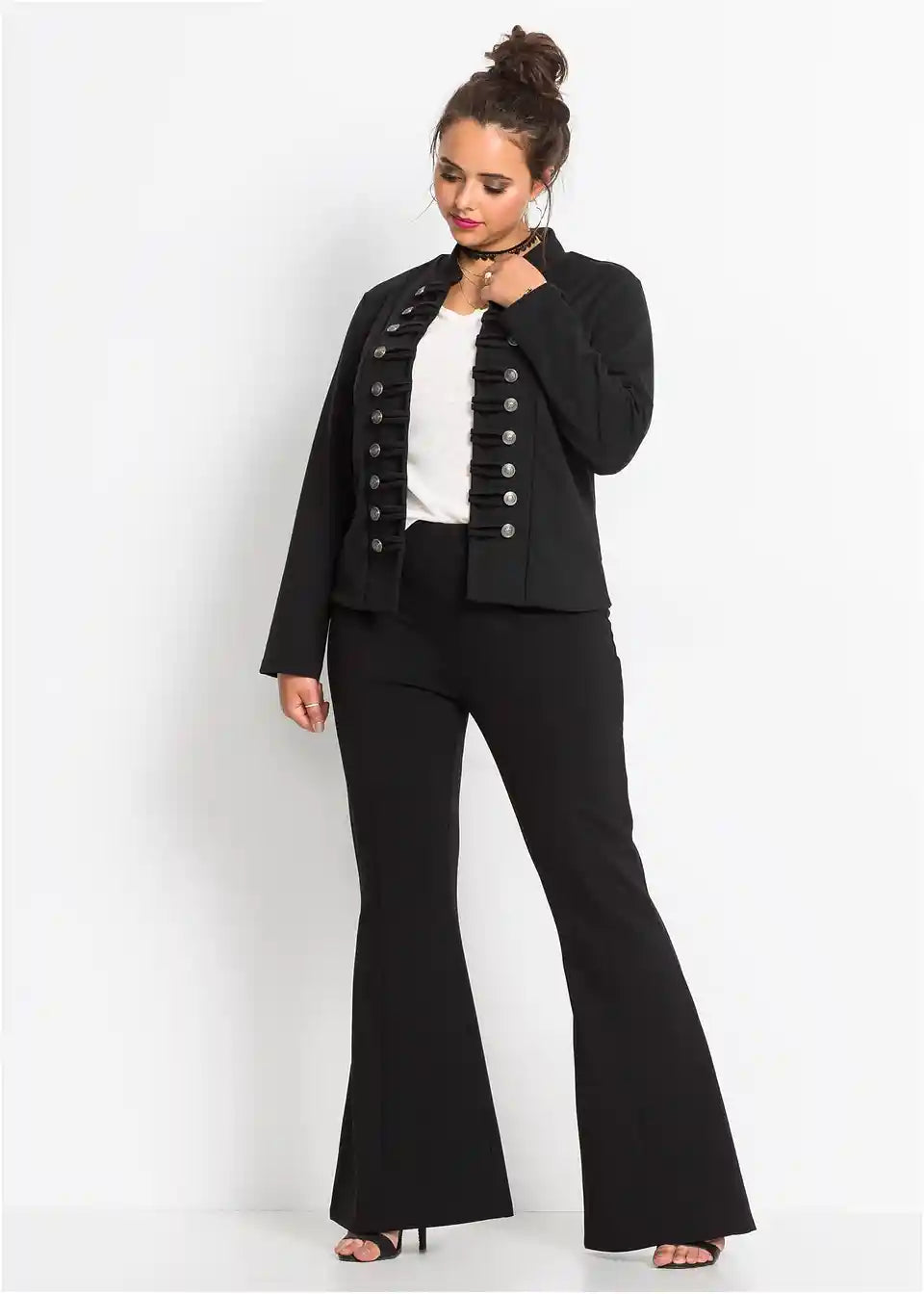 Privlačenje pogleda i ostavljanje dojma zajamčeno je s ovim ultramodernim hlačama. Široki zvonasti rub čini ih apsolutnim favoritom za posebno stiliziran izgled. Gornji dio ovih cool zvonastih hlača lijepo prianja uz tijelo - što još više ističe širinu donjeg dijela nogavica. Dekorativni šav na bedru i suptilan pojas s elastičnom trakom osiguravaju dobru udobnost i pristajanje.